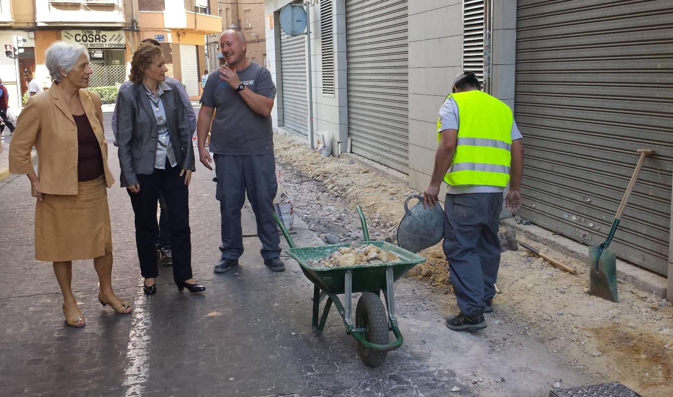 Con el propósito de mejorar la seguridad de los ciudadanos que diariamente pasan por la calle Santo Tomás de Torrent, se ha llevado a cabo una actuación por parte de los alumnos de la Escuela Taller para ampliar las aceras. La alcaldesa, Amparo Folgado, acompañada por la delegada de Bienestar Social, Pilar Vilanova, se ha acercado hasta esta calle para comprobar en qué fase se encuentran los trabajos.