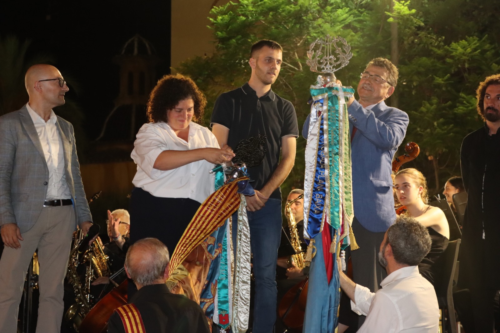 Després de les intervencions d’agraïment, els presidents de les societats musicals van posar en els seus estandars dos corbatins en record d’aquest dia. A continuació, l’Alcalde d’Alaquàs va obsequiar les entitats musicals amb una placa commemorativa així com un quadre de la commermoració del 20 aniversari del Castell d’Alaquàs per a l’Ajuntament de La Vall d’Uixò. Es va obsequiar a la societat castellonense amb una placa per la seua participació per part de la UMA.