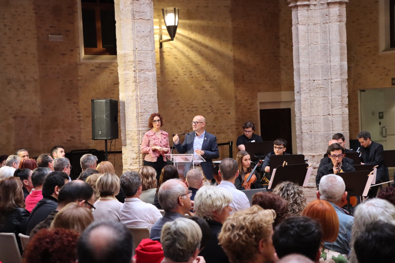 L’acte va ser conduït per la periodista Laura Sena, autora de l’exposició “Un Castell per al poble en notícies de Laura Sena” i en ell va intervindre també la directora de les dues oficines de Caixa Popular d’Alaquàs, Pilar Molina, que va destacar l’estima i compromís del veïnat d’Alaquàs i va agrair al poble d’Alaquàs la seua confiança i compromís en l’entitat bancària. A continuación, Tere Estreder, en representació de l’equip que coordina l’Orquestra de l’Horta Sud, va reconéixer que “l’acte de hui és un somni que s’ha fet realitat perquè actuem per primera vegada al Castell amb una Orquestra que sempre hem somiat en la qual oferim a la joventut una oportuntiat on continuar formant-se en corda amb un professorat d’alt nivell”. Va agrair als ajuntaments i entitats que ho han fet possible i va realitzar un agraïment especial a la Unió Musical d’Alaquàs “perquè sense la UMA, aquesta Orquestra no estari hui ací”.