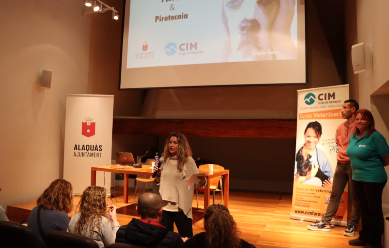 La xerrada, impartida per Amparo Fortea, formadora d’ensinistradors i especialista en conducta canina i per Miguel Monfort, terapeuta amb animals, es va celebrar per tal de donar pautes a les i els propietaris d’animals per tal d’actuar davant de la por de les seues mascotes per la pirotècnia i conscienciar la ciutadania sobre l’impacte de la pirotècnia en els animals.