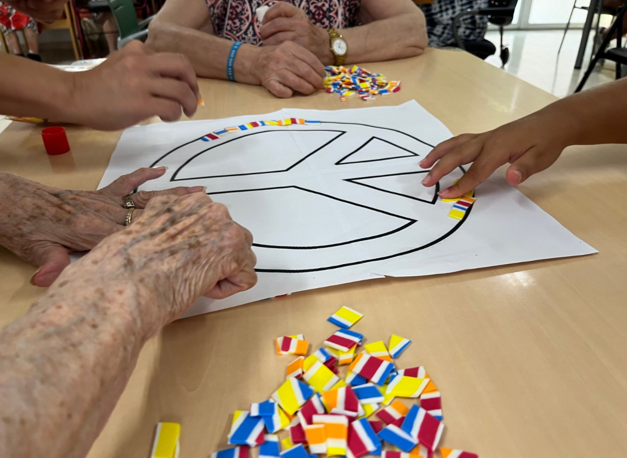 Per una banda, l’alumnat que participa en el projecte del Centre de Dia d’Alaquàs es desplaça fins al centre per a compartir amb les persones majors alguns matins. Realitzen activitats lúdiques així com tallers de manualitats i comparteixen espai en una activitat intergeneracional que els permet intercanviar experiències i aprendre de manera mútua.