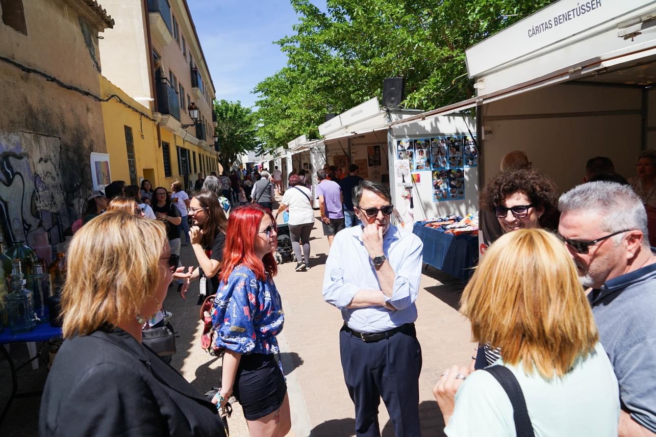 Tras la firma en el libro de honor por parte de Gloria Soriano, concejala de Turismo, la comitiva procedió a cortar la cinta inaugural en la calle Mayor dando así el pistoletazo de salida a la actividad de las cerca de 50 casetas que conforman la feria de este año, una propuesta que tiene como objetivo la promoción del comercio de proximidad y dar a conocer de primera mano el trabajo de las entidades de la localidad. Además, el gran recinto peatonal acoge también la tradicional feria medieval y la feria de atracciones que completan la oferta de ocio programada hasta el 5 de mayo por el Ayuntamiento de Benetússer y que tiene en la plaza Cardenal Benlloch el punto de encuentro en el que confluyen los eventos culturales.