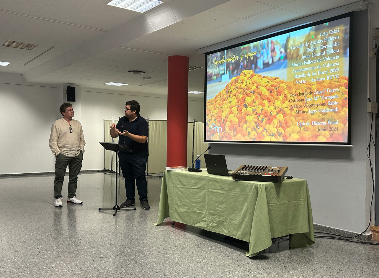 Con presencia de 66 espectadores y el apoyo de unas fotos muy atractivas, Ángel Torres realizó un recorrido por su historia, las características de la fiesta, los protagonistas, su significado… todo ello completado con vídeos de dos amplias entrevistas a Iván Esbri (Gremio de Artistas Falleros) y la intervención en directo de Rubén Hernandis (autor también de algunas de las fotos proyectadas), para aclarar algunos detalles históricos.