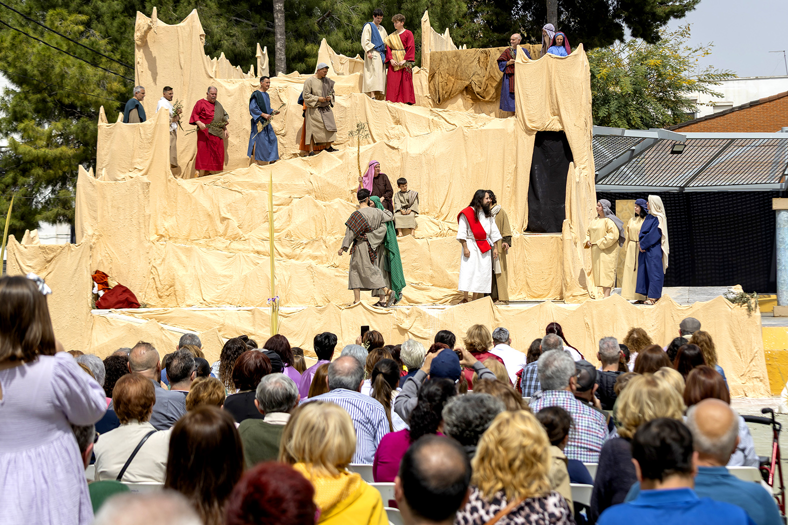 pretorio que se erigía sobre la plaza del Ayuntamiento para la escena del Juicio de Jesús.