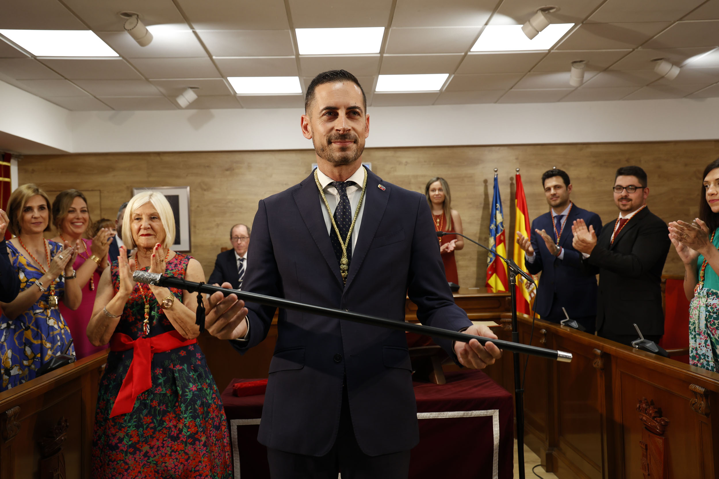 Multitud de personas han asistido al acto de investidura, abarrotando un Salón de Plenos que hoy se ha quedado más pequeño que nunca y en cuyo vestíbulo se ha tenido que habilitar una pantalla para que pudieran seguir el acto todos los y las asistentes. Tras la toma de posesión de los 21 concejales y concejalas ha llegado el momento de la votación e investidura de Carlos F. Bielsa como alcalde. Posteriormente, se ha producido el turno de intervenciones de los y las que serán portavoces de los grupos municipales: Mª Luisa Martínez Mora (PSOE), Fernando Gandía Escorihuela (PP), Álvaro Galán Leal (VOX) y Silvia Maiques Samarra (Compromís-Podemos). Y para culminar el acto, el ya investido alcalde, ha realizado su primer discurso de la legislatura.