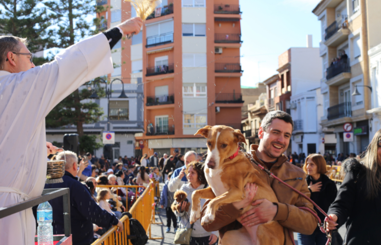 Cap a les 12 hores del migdia va començar la tradicional benedicció dels animals a càrrec del rector de la parròquia de Sant Antoni de Pàdua, un acte en el qual centenars de veïns i veïnes van acudir a la plaçadel Mercat al costat de les seues mascotes i animalsdomèstics perquè aquests reberen la benedicció.