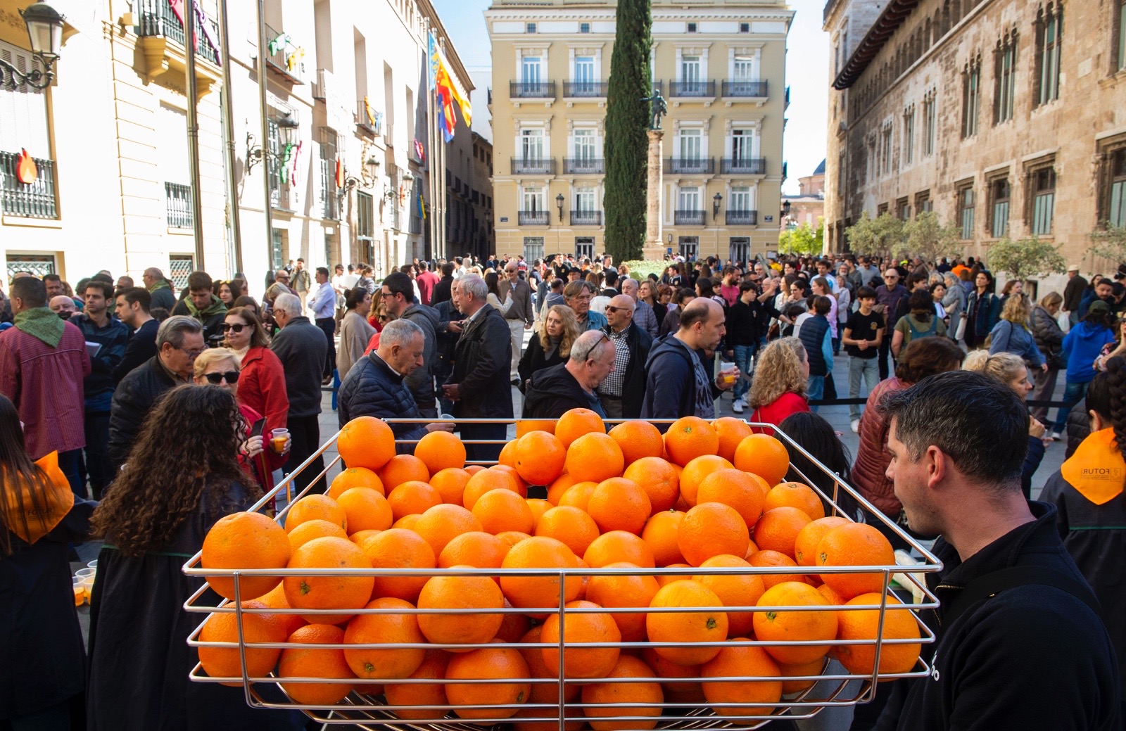 La Plaza Manises, lugar donde se ubica la sede central de la Diputació de València, ha acogido este miércoles por primera vez la tradicional Horchatada y Naranjada Fallera, organizada por la Federación de Ocio y Turismo (Fotur) en colaboración con el área de Turismo de la corporación provincial. Se trata de uno de los eventos más esperados de estas fiestas, en el que cientos de valencianos y turistas han podido disfrutar de dos de las bebidas más representativas de nuestra tierra.