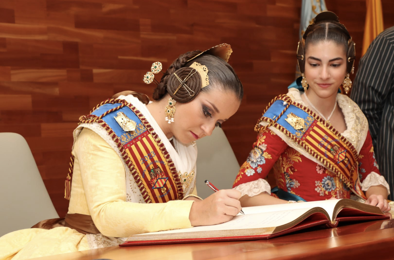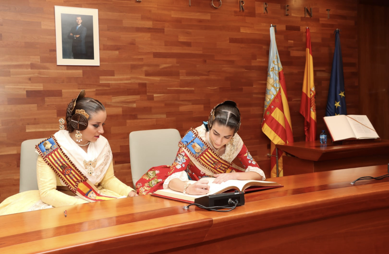 Como manda la tradición, las Falleras Mayores de Torrent, Anna Mora Miquel y Lorena González Andreu, han dejado constancia de su cargo firmando en el libro de honor de la ciudad