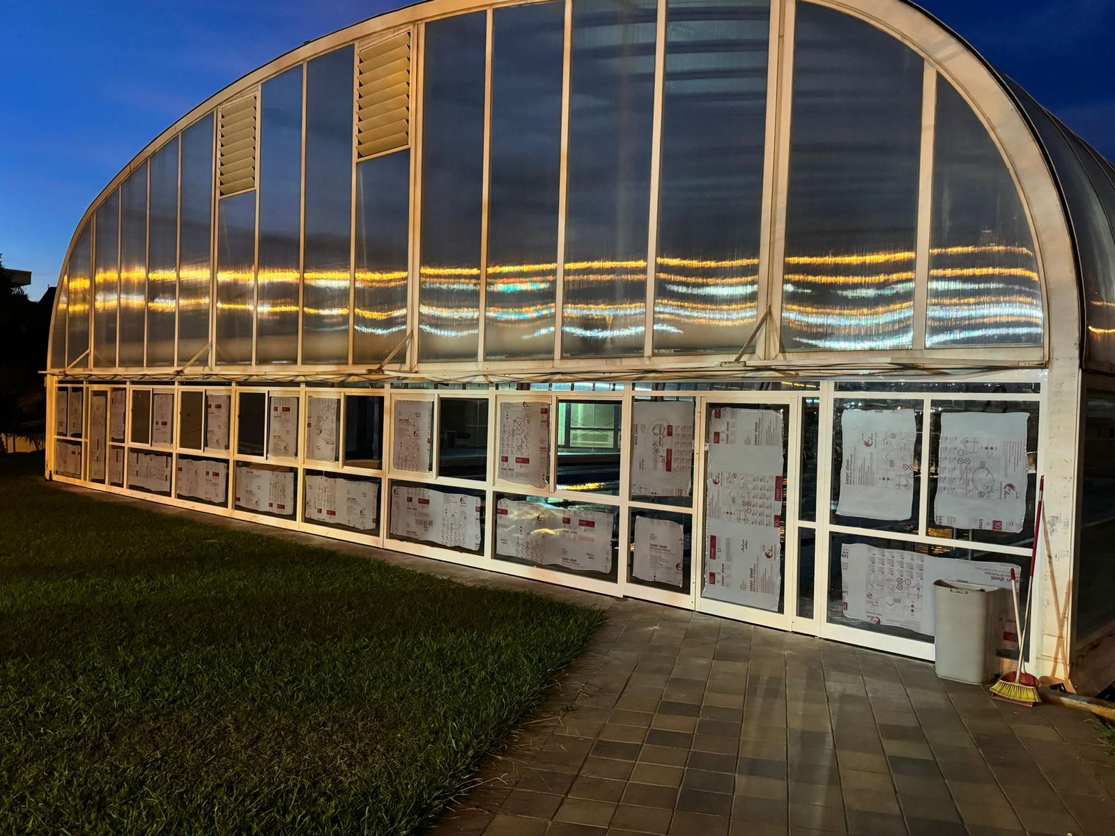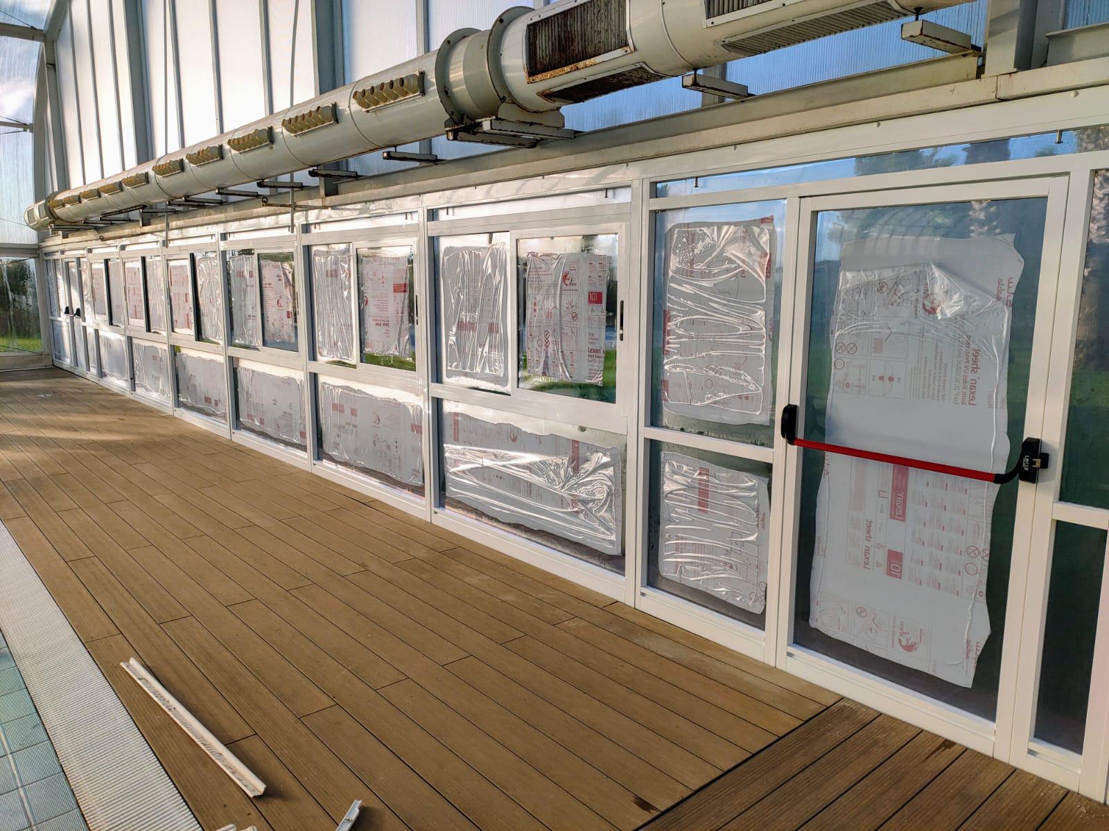 El frontal de la zona sur de la cubierta sufrió distintos destrozos durante el temporal de viento en Semana Santa. En apenas unos días se hizo la reparación y se abrió al público, pero hacía falta una mejora a fondo de la cúpula, con especial atención a esa zona que da al jardín de la piscina.