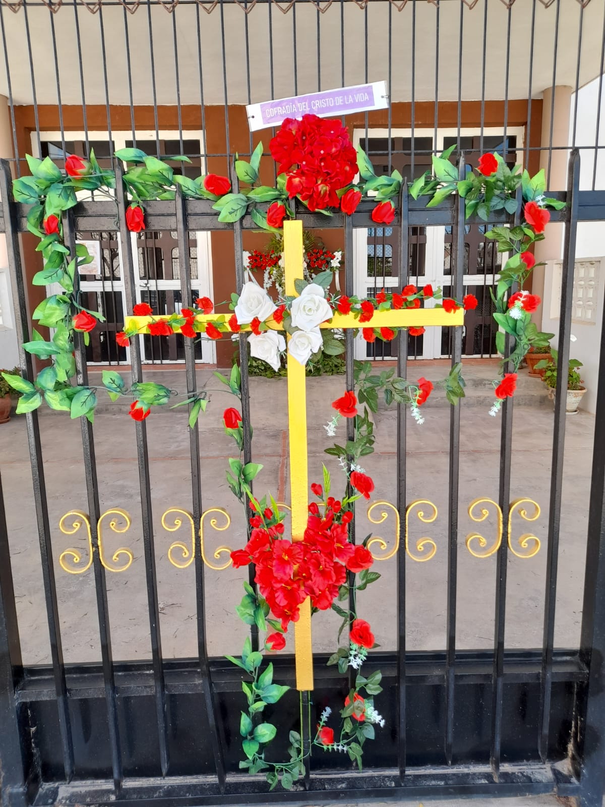 La recién creada Cofradía del “Santísimo Cristo de La Vida” se ha estrenado con su primer objetivo instalando la Cruz de Mayo en el acceso a la Iglesia del núcleo urbano de la playa adornando con flores la Cruz ante la atenta mirada de los feligreses y transeúntes.