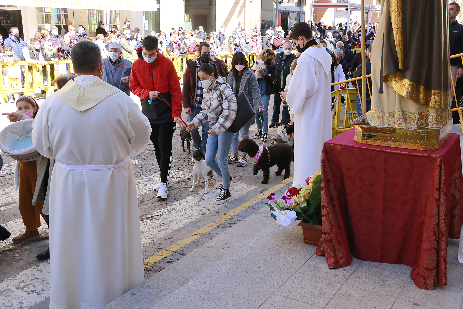 La bendición comienza situando la imagen de Sant Antoni frente a la parroquia y, a continuación, el desfile de mascotas que cada año incluye animales de lo más variopinto, seguido de los carruajes y caballos, las estrellas de la función. Como agradecimiento por su presencia, desde la asociación entregan un detalle para todos los que desfilan…además del agua bendita a cargo del párroco.