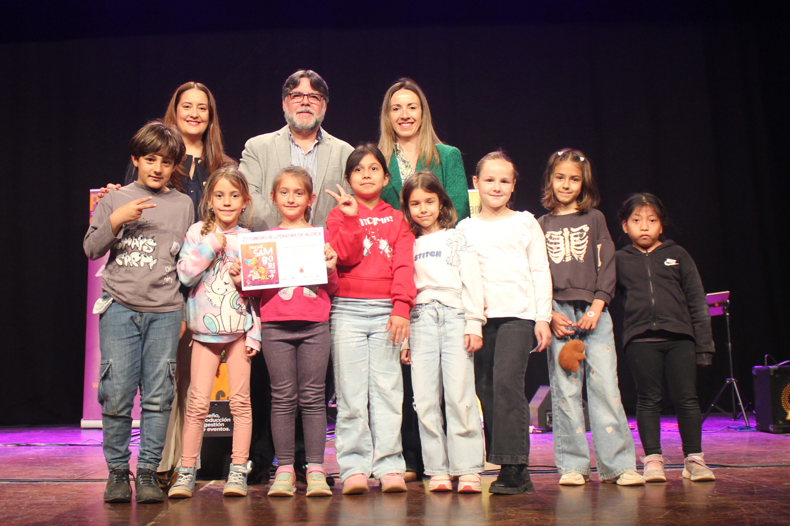 “El apoyo a los premios Sambori Local nos conduce a reafirmarnos en una clara apuesta por el valenciano como vehículo de comunicación y convivencia en todos los ámbitos, defendemos la diversidad lingüística y normalización del uso del valenciano en el día a día”, explicó Civera. Por su parte, Brisa destacó la calidad de los cuentos presentados y recordó que el “valenciano es el eje vertebrador de nuestra cultura y es una lengua rica que ha dado a grandes autores, tal vez el día de mañana encontremos en las librerías obras de los alumnos hoy premiados”.