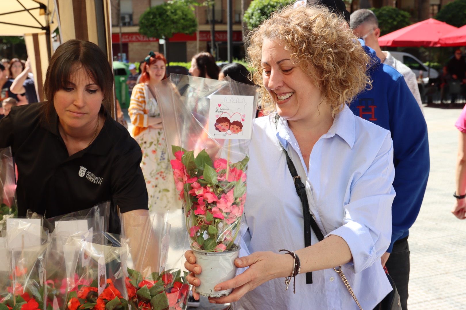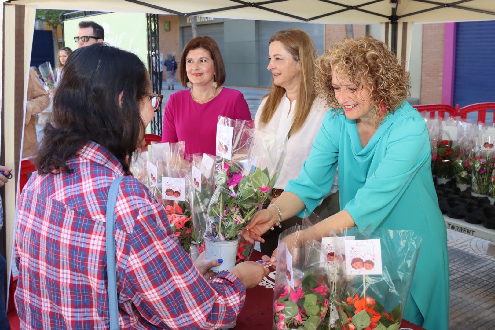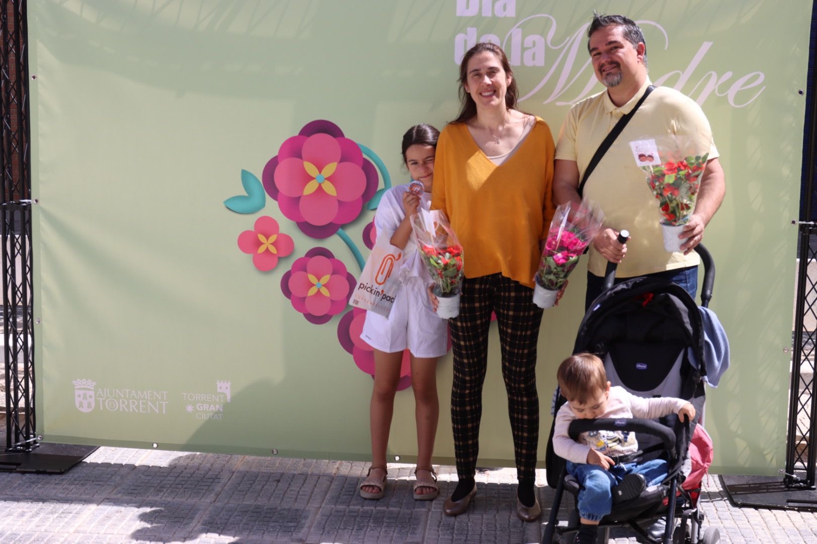 El Ayuntamiento de Torrent ha celebrado por primera vez el Día de la Madre con una gran fiesta en la Plaza América, donde se han repartido más de 1.500 macetas con flores a las madres que se han acercado al stand habilitado para la ocasión.
