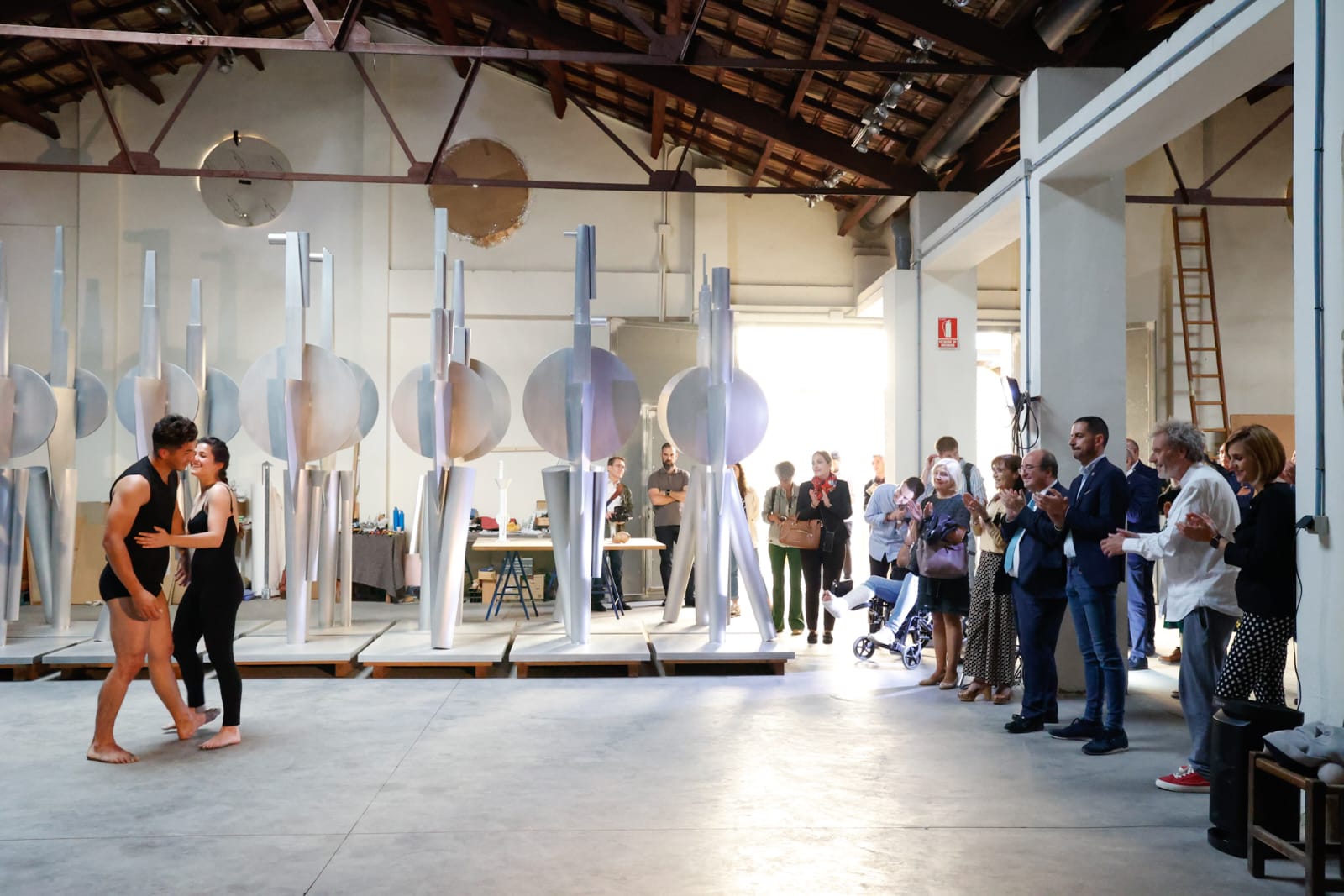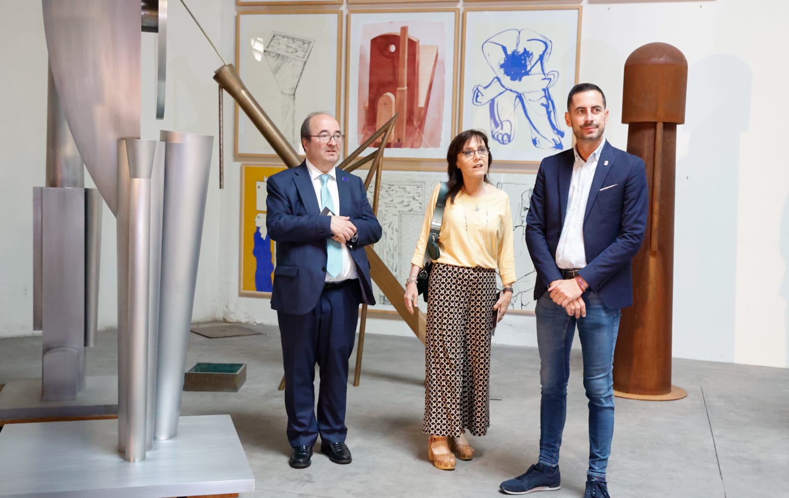 Posteriormente, se han trasladado a pie hasta el taller del escultor mislatero, Miquel Navarro, donde Iceta ha conocido de primera mano la obra del artista internacionalmente conocido y Premio Nacional de Artes Plásticas de 1986.