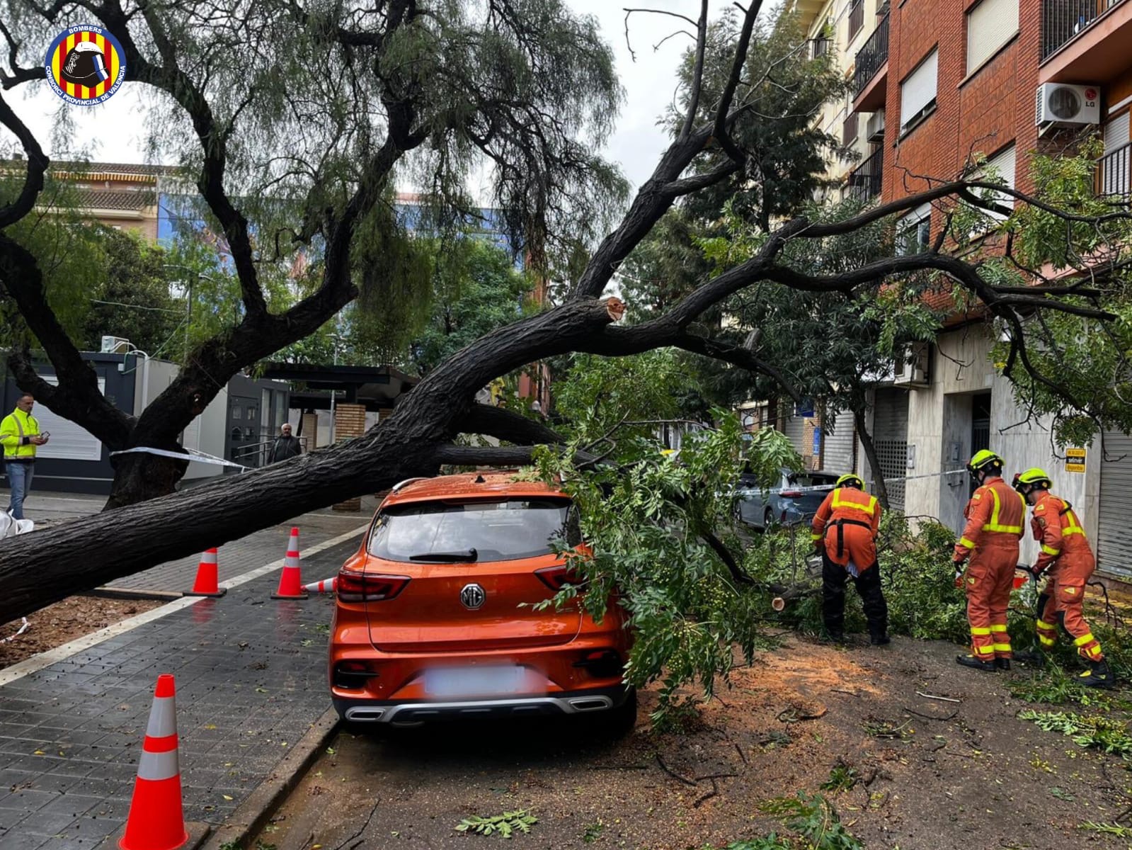 A Picanya, els bombers de Torrent han hagut d’intervindre per caiguda d’un arbre en una zona pròxima al mercat municipal, precipitant-se sobre un vehicle i la via pública al voltant de les 10.35 h.