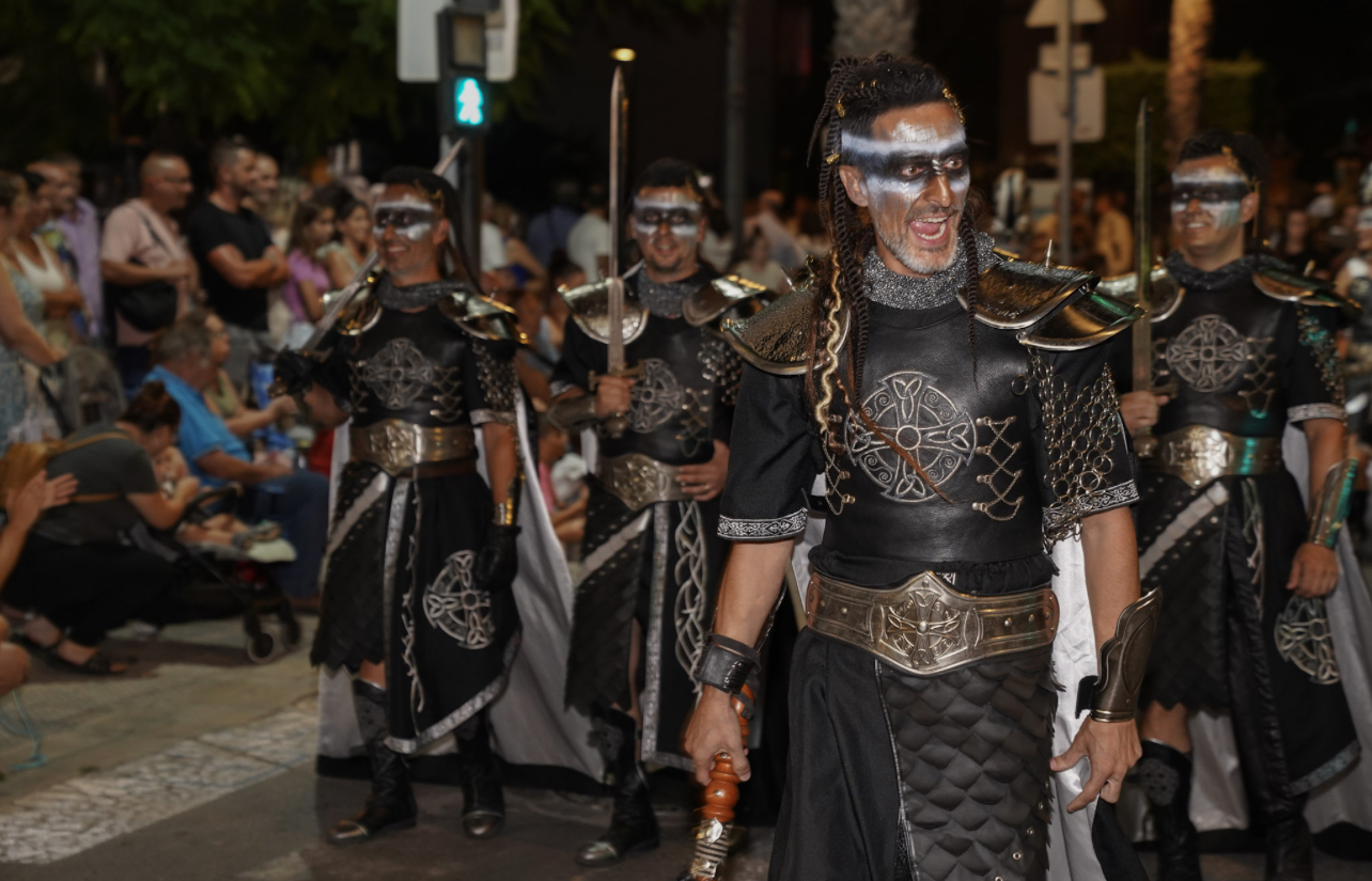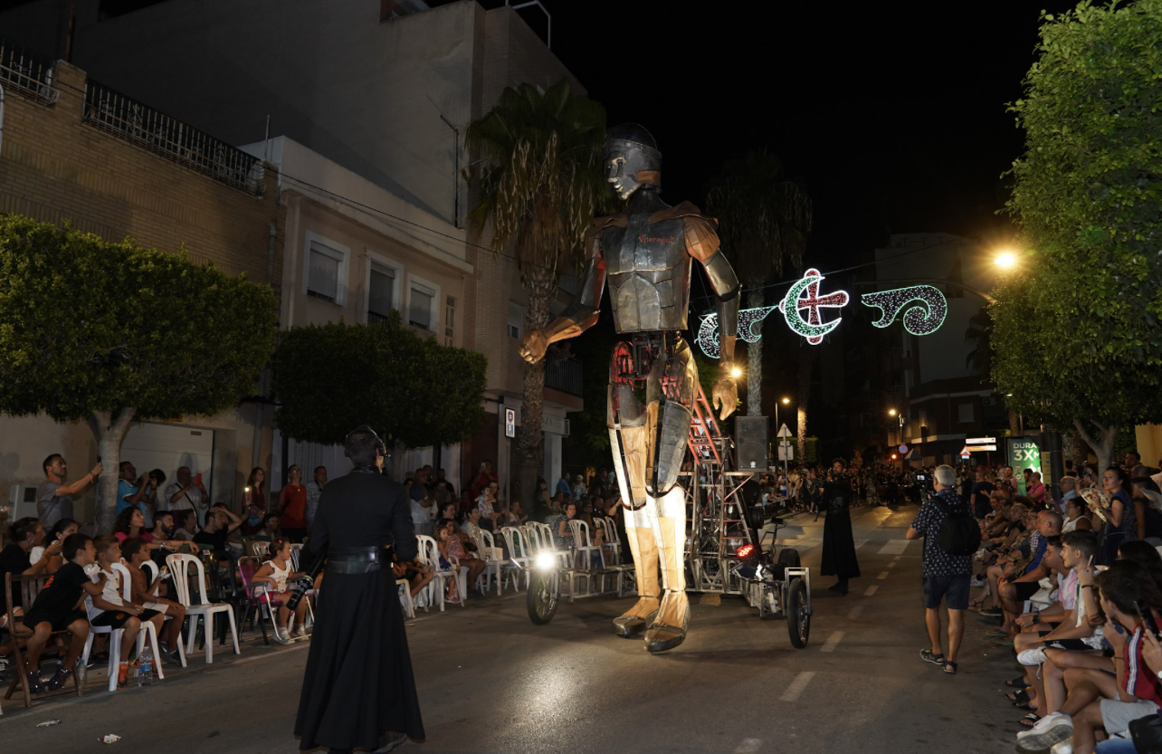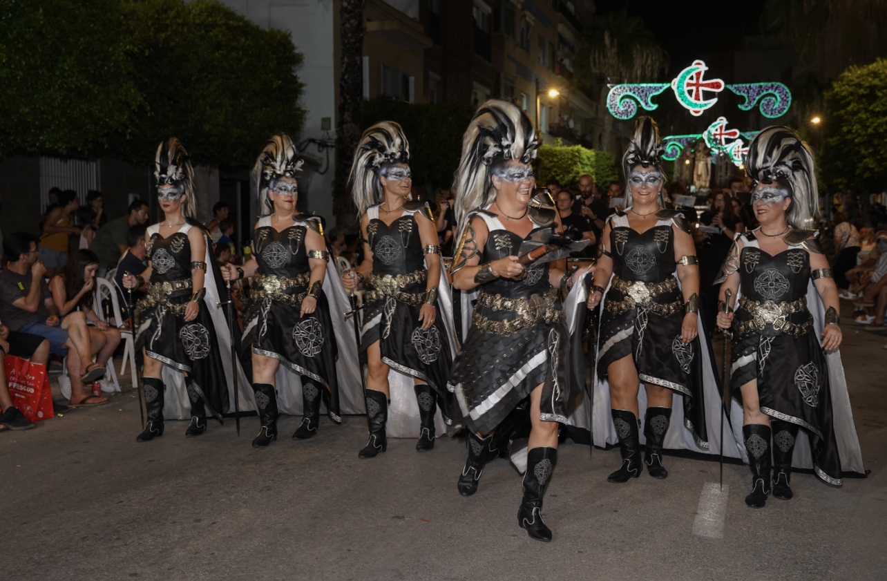 A continuación, la decena de comparsas Cristianasrestantes fueron las encargadas de mantener el impulso ofrecido por Els Vilaragut. Un desfile que se prolongó durante más de dos horas en otra noche calurosa que no mermó la voluntad de los comparseros de ofrecer un gran espectáculo a vecinos y visitantes.