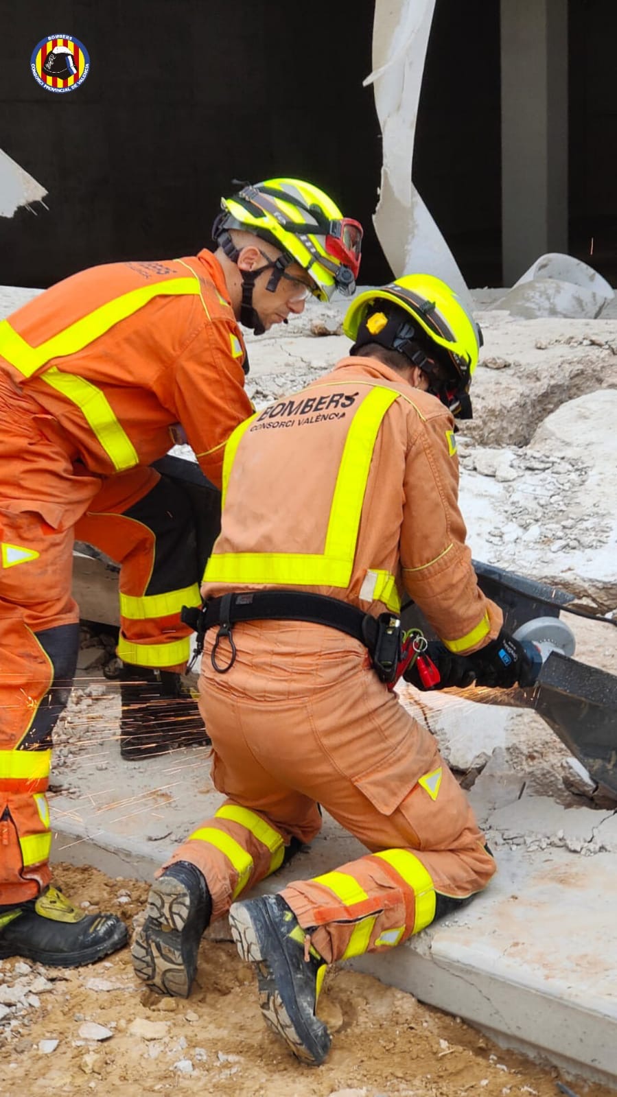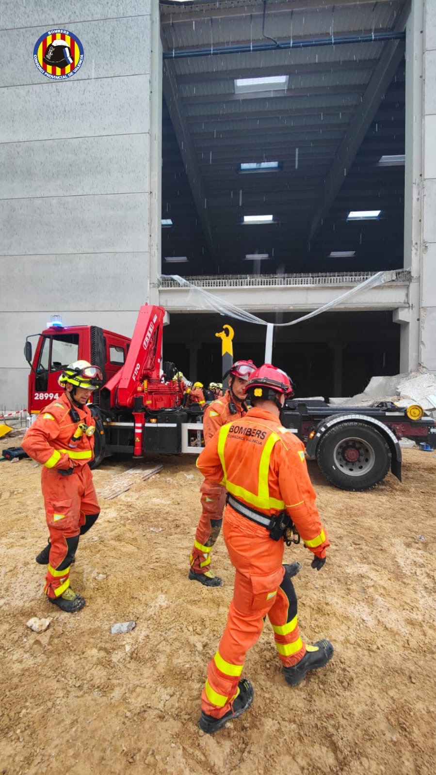 Fins allí s’hi han mobilitzat tres dotacions de bombers de Paterna i Burjassot, sergent de Paterna, oficial de guàrdia, cap de sector, cap de parc de l’Eliana i la UREC, unitat de Rescat en Emergències i Catàstrofes del Consorci, especialitzada en escenaris d’enderrocs. Els membres de la UREC estan seccionant els panels de formigó i retirant-los amb vehicle ploma.