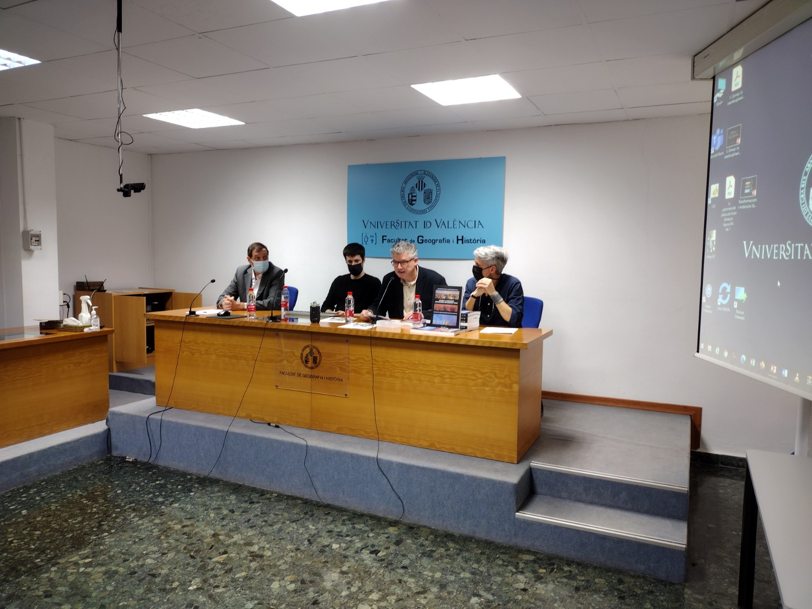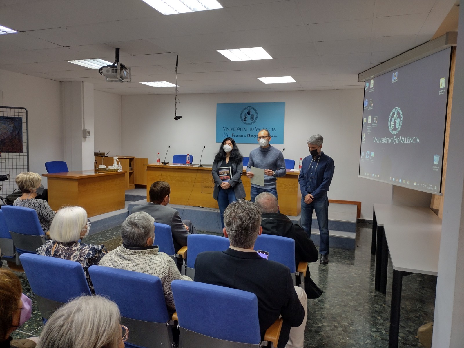 L’acte de presentació ha estat al Saló de Graus de la Facultat de Geografia i Història de la Universitat de València i ha comptat amb una gran presència de públic i estudiants i ha estat presentat per Ester Alba, vicerectora de Cultura i Societat de la institució acadèmica, Emilio Iranzo, vicedegà de Cultura de la facultat i Josep-Marí Gómez, coordinador del llibre coral. Després ha seguit amb les interessantíssimes intervencions de l’editor, així com de Pascual Patuel, Felip González, Joan Gómez i el propi Josep-Marí.