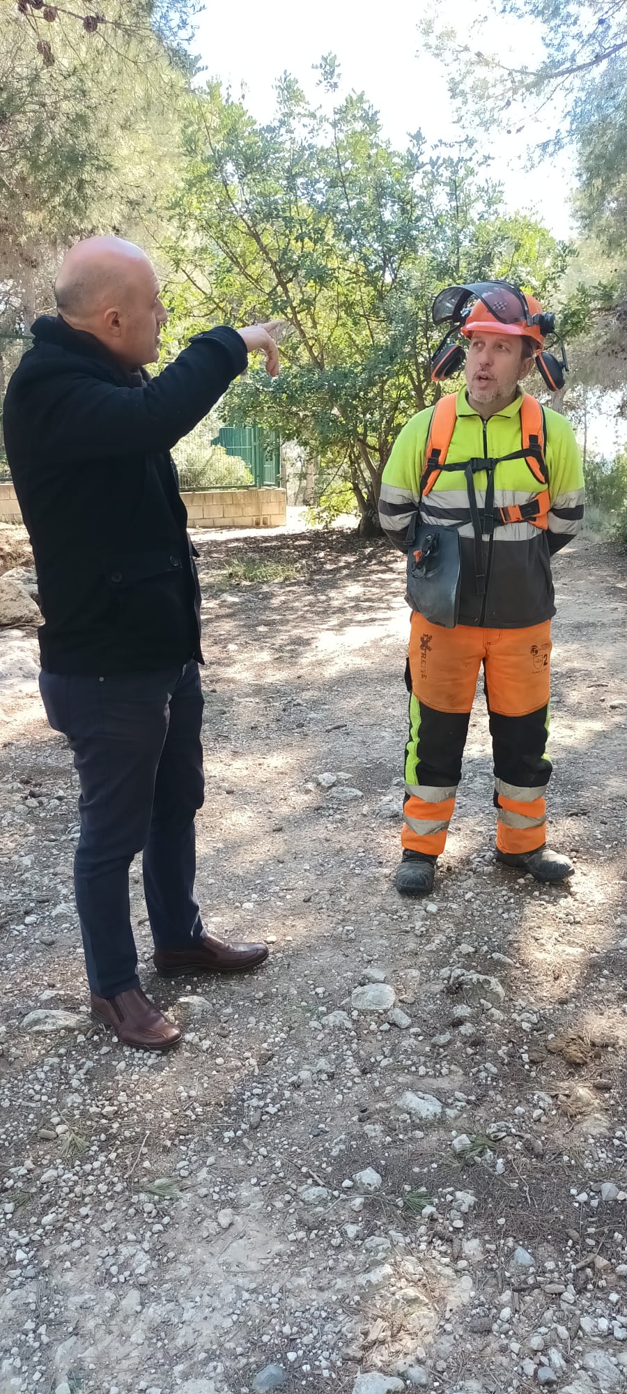 En los últimos días la brigada ha incidido en la poda de la formación de matorral, el desbroce y la tala de determinadas secciones del arbolado, tanto en vías como en el perímetro de parcelas privadas, de las zonas boscosas del Vedat y la Serra Perenxisa