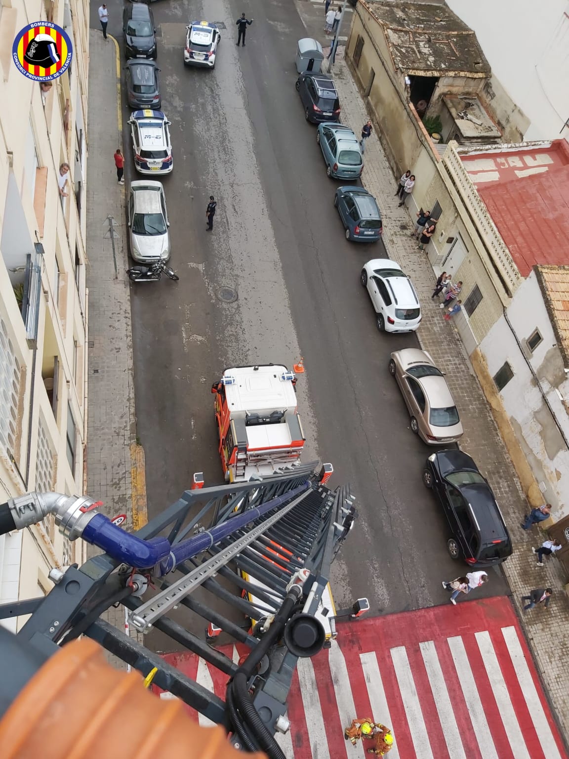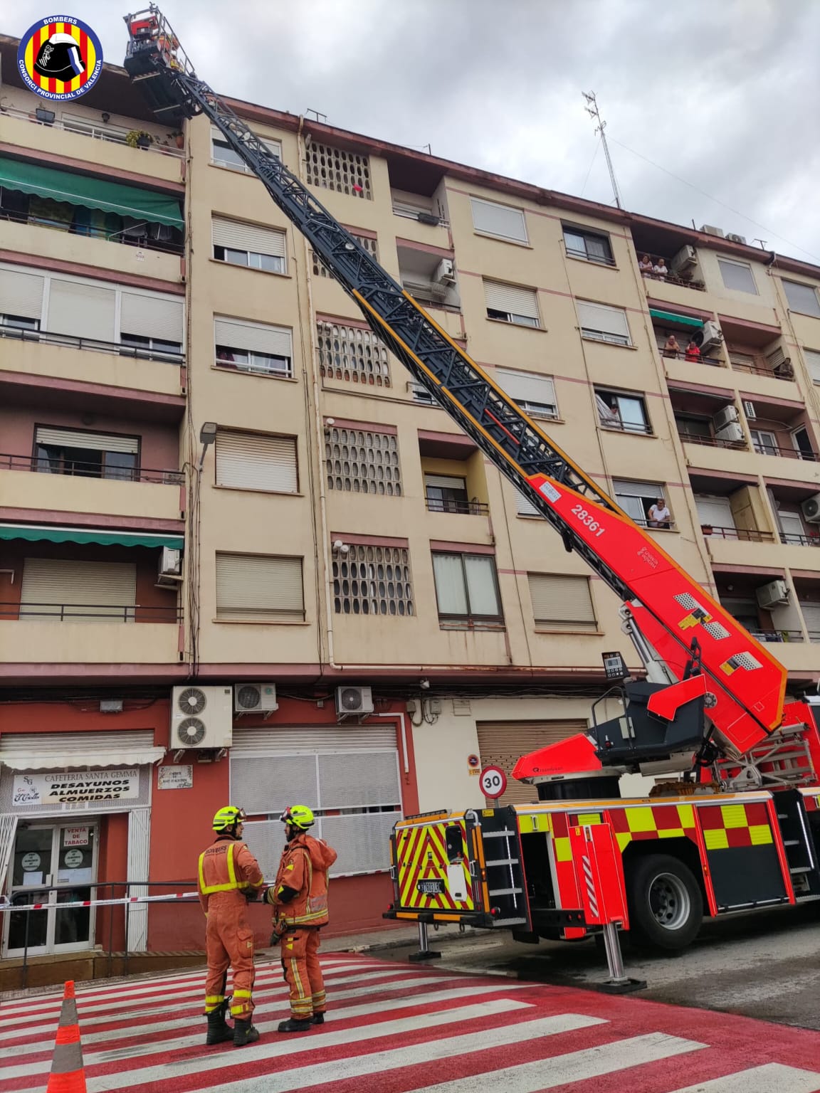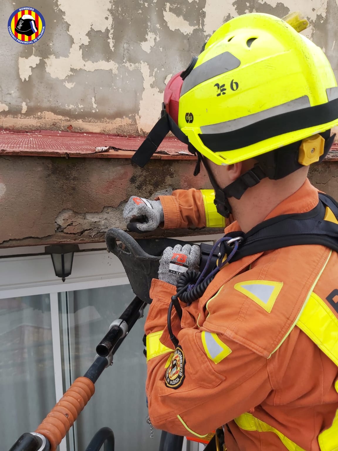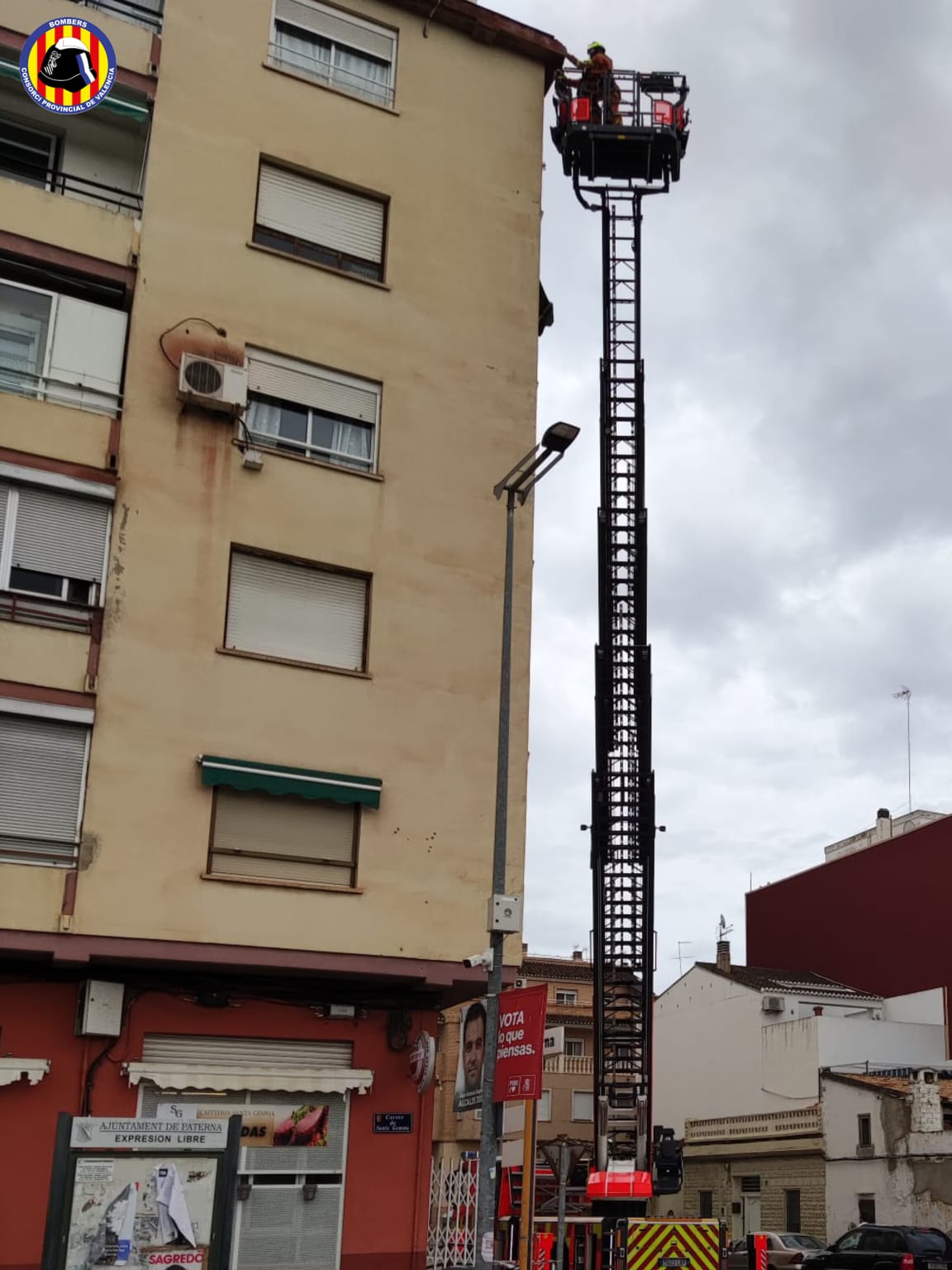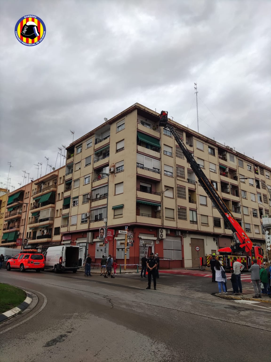 Los cascotes han caído a la vía pública desde más de diez metros de altura, en un edificio situado en el cruce de las calles Santa Gemma y Joan d’Àustria de Paterna, según ha informado el Consorcio de Bomberos de Valencia.
