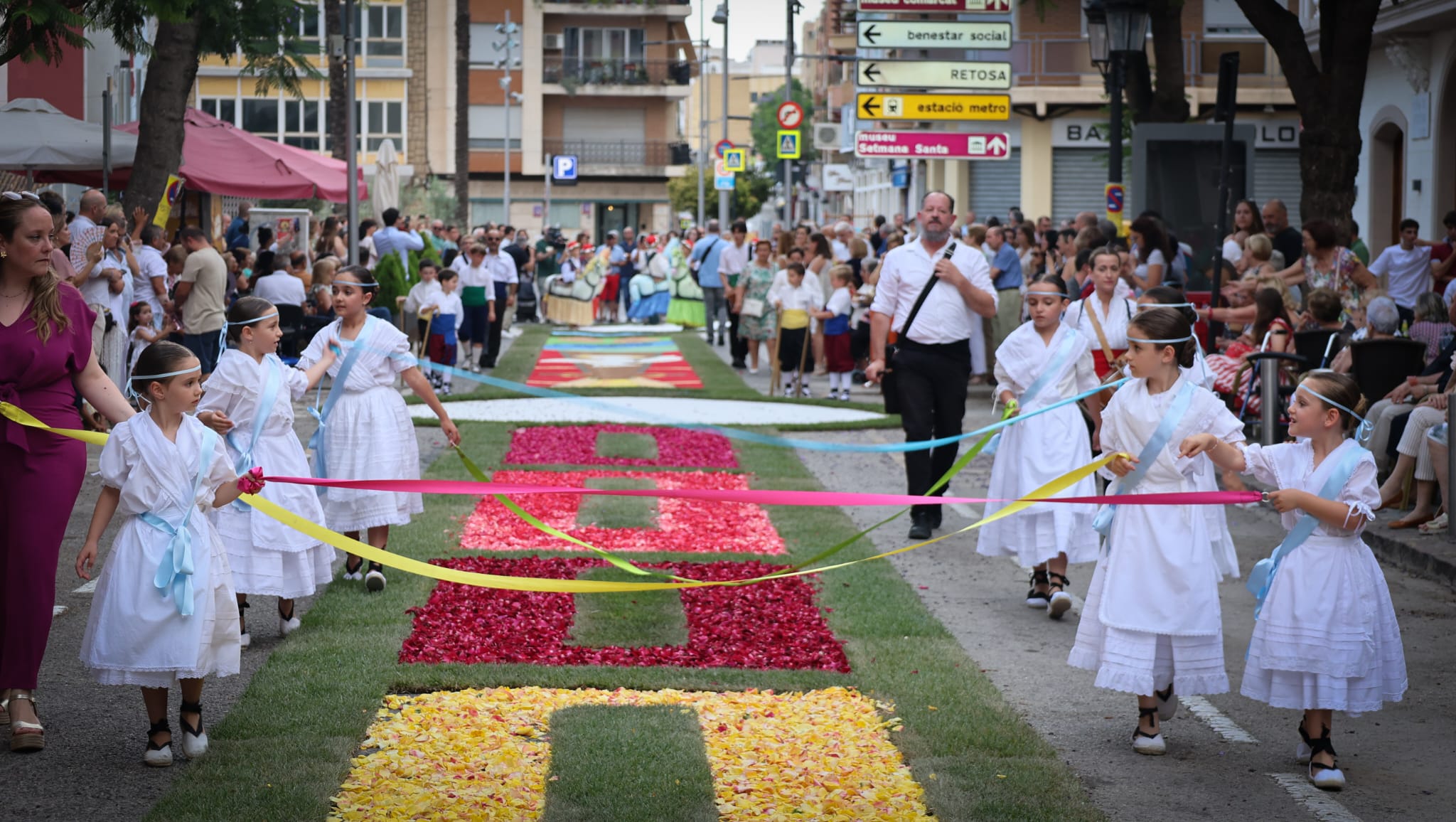 Como cada año desde su recuperación en 2008, la instalación del tapiz floral en la Plaza Mayor, destacó este fin de semana. La obra ha estado a cargo del florista torrentino Adrimar, y ha contado con la colaboración del Ayuntamiento de Torrent y Caixa Rural Torrent.