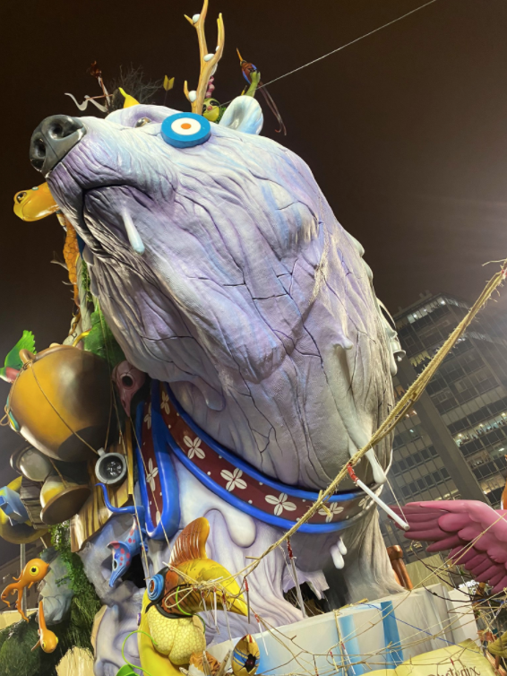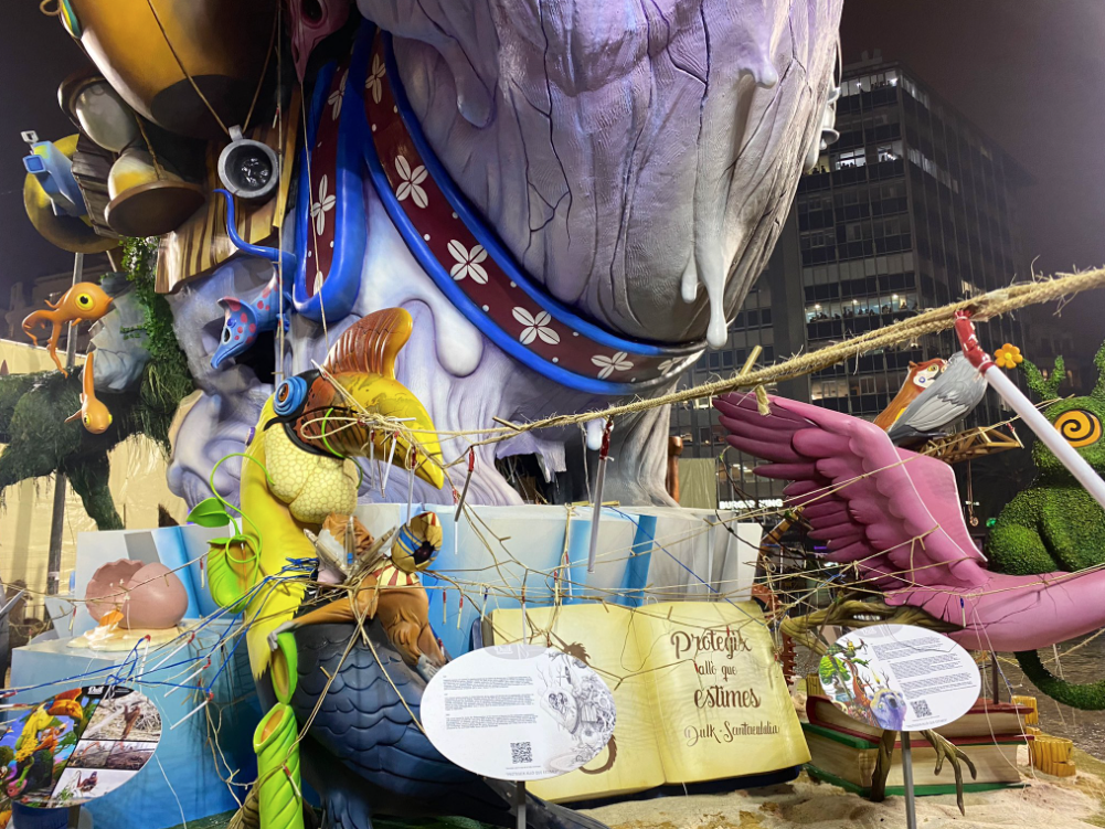 El monumento era un canto a la Naturaleza repleto de animales en peligro de extinción y construida con materiales sostenibles para alertar del riesgo de que desaparezcan muchas especies de flora y fauna, como el enorme oso polar con mirada triste e incierta que se ha convertido en uno de los emblemas de estas Fallas.