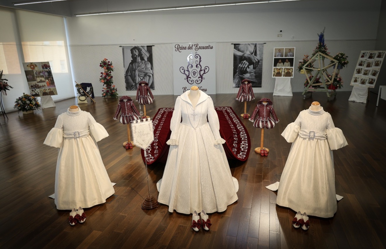 La moda de la nobleza europea de los siglos XV y XVI, los detalles de la Hermandad del Ecce Homo y parte del manto de la Virgen de los Desamparados están presentes en el traje de la Reina del Encuentro