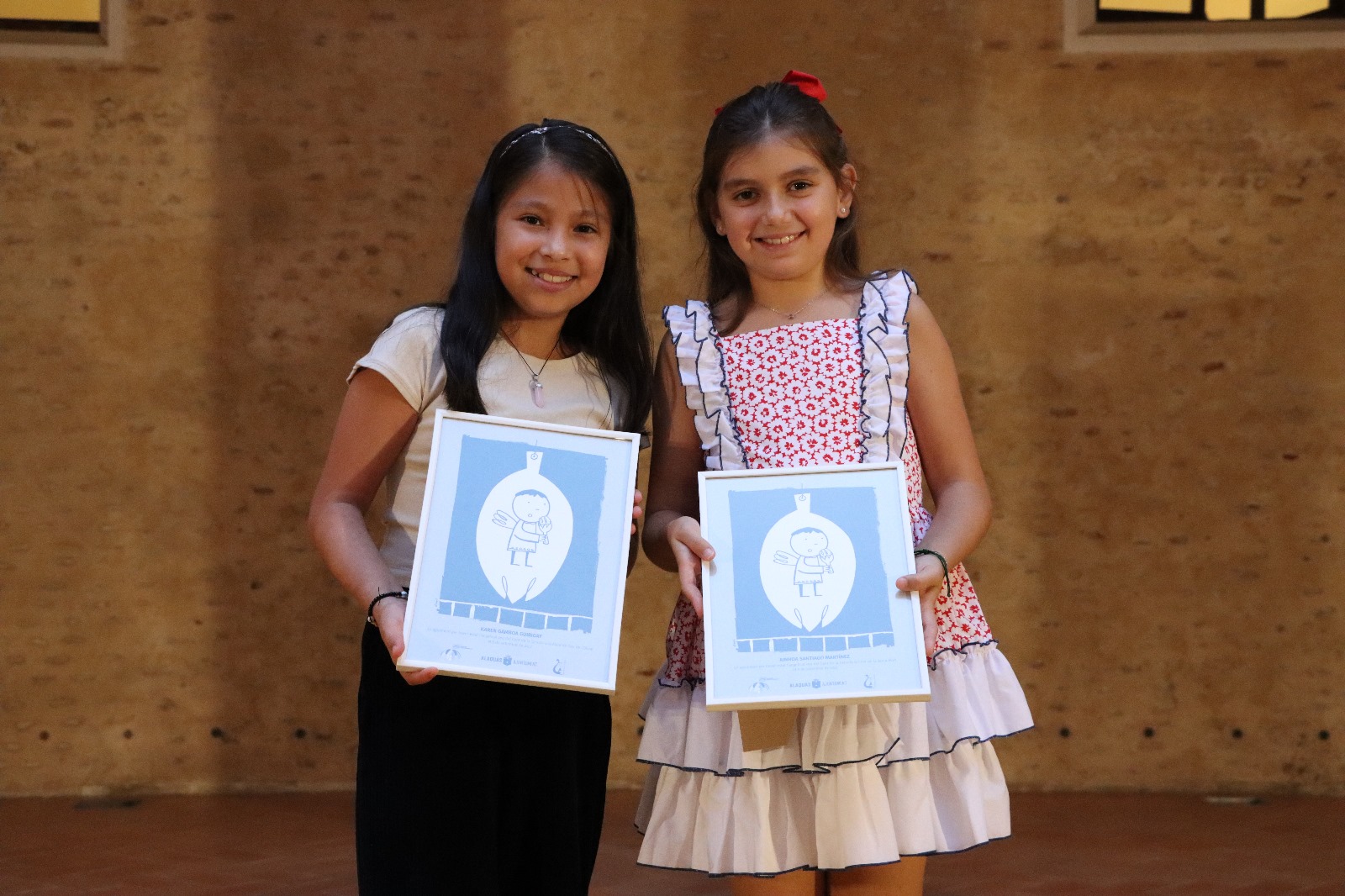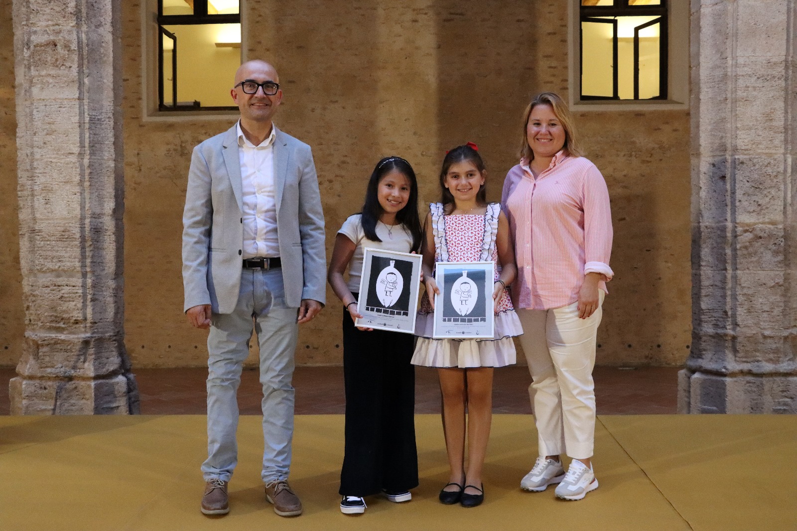 Karen Gamboa Guirigay i Ainhoa Santiago Martínez van rebre la il·lustració dissenyada per l’artista alaquaser Gerard Miquel que va ser recuperada i digitalitzada aquest any.