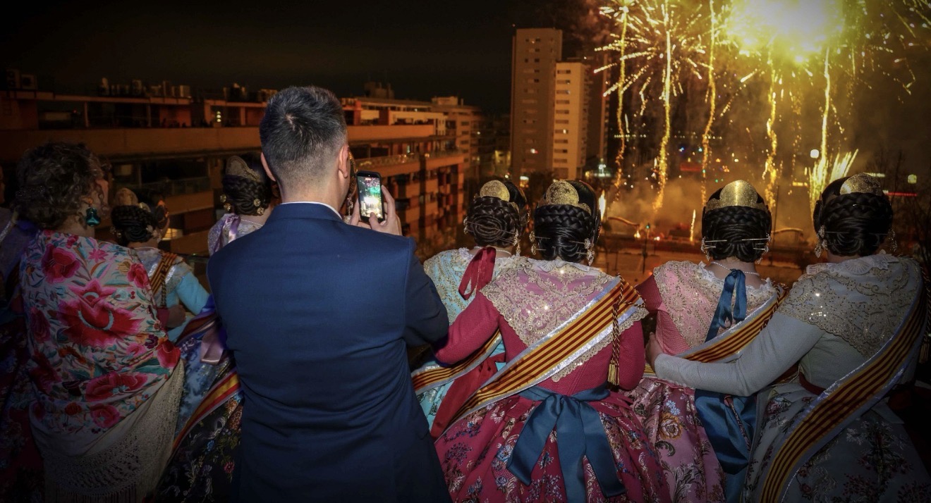 Abans del tret principal, la ciutat va viure un correfoc que va recórrer diversos carrers des de l’avinguda del Vedat. La colla Dimonis d’Alaquàs, junt amb representants de comissions falleres, va omplir el recorregut d’espurnes, ritme i ambient festiu.