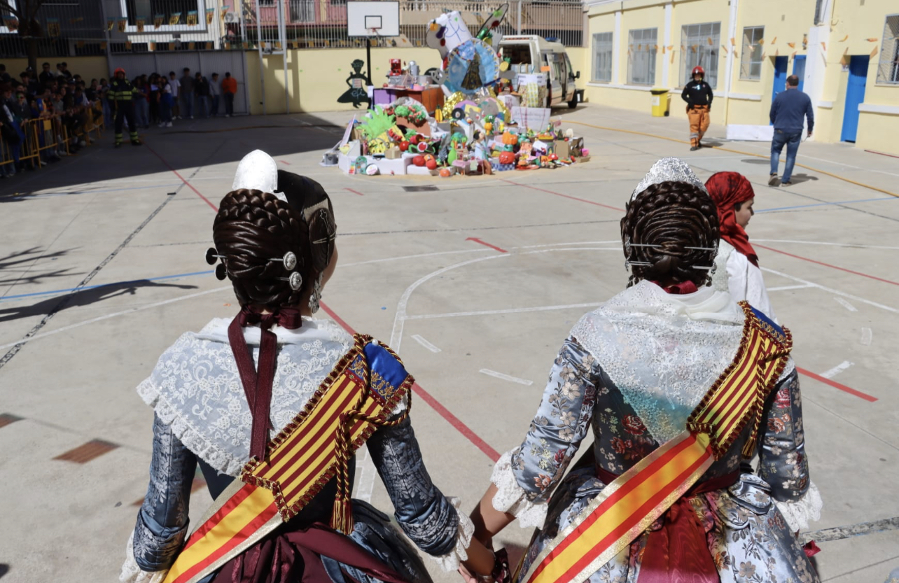 Primeramente, las Falleras Mayores han visitado la Escuela de Educación Infantil Pulgarcito en compañía de sus cortes de honor y los miembros de la Corporación Municipal, y a continuación la comitiva fallera se ha trasladado hasta el Colegio Santo Tomás de Aquino para después finalizar su recorrido acompañando al alumnado del Colegio La Purísima en la Cremà de su monumento fallero.