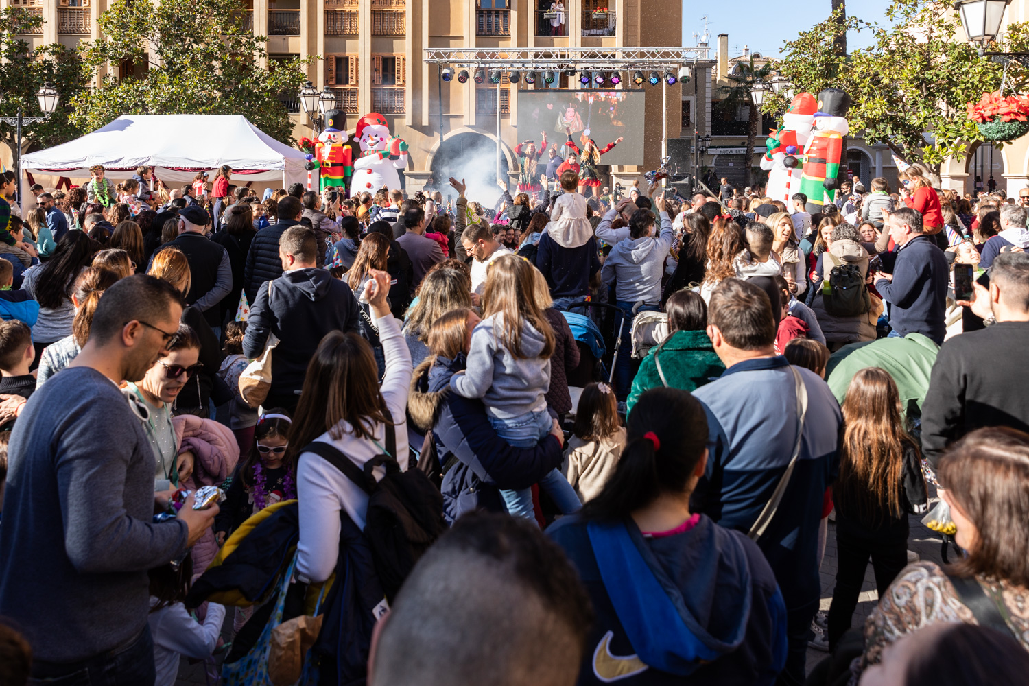 A la fiesta acudieron la alcaldesa, Maribel Albalat, y el concejal de Educación, Alejandro Sánchez, que desde el escenario acompañaron las campanadas comiendo sus 12 uva-chuches junto a todos los niños, niñas y adultos que gritaban al unísono para despedir el año.