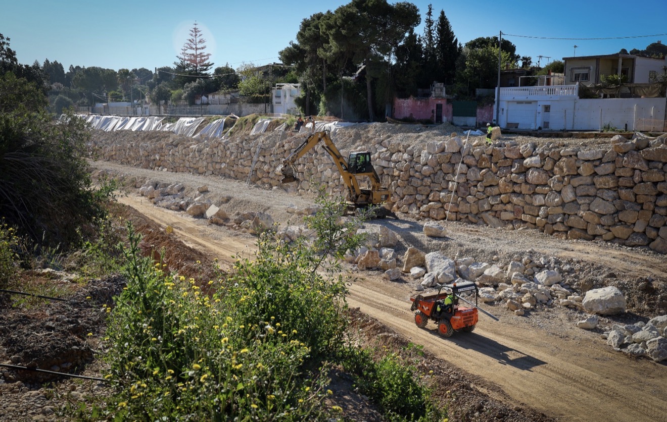 Las obras se centran en tres puntos especialmente afectados del barranco de l’Horteta, donde la fuerza del agua provocó desprendimientos, erosiones y la pérdida de parte de los taludes que protegen el cauce.