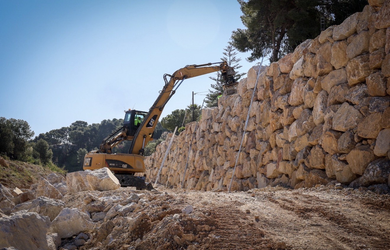 Para recuperar la estabilidad del terreno se está ejecutando la reconstrucción completa del talud mediante escolleras de gran tamaño, que permitirán proteger la ribera del barranco y evitar nuevos procesos de erosión en futuros episodios de lluvias intensas.