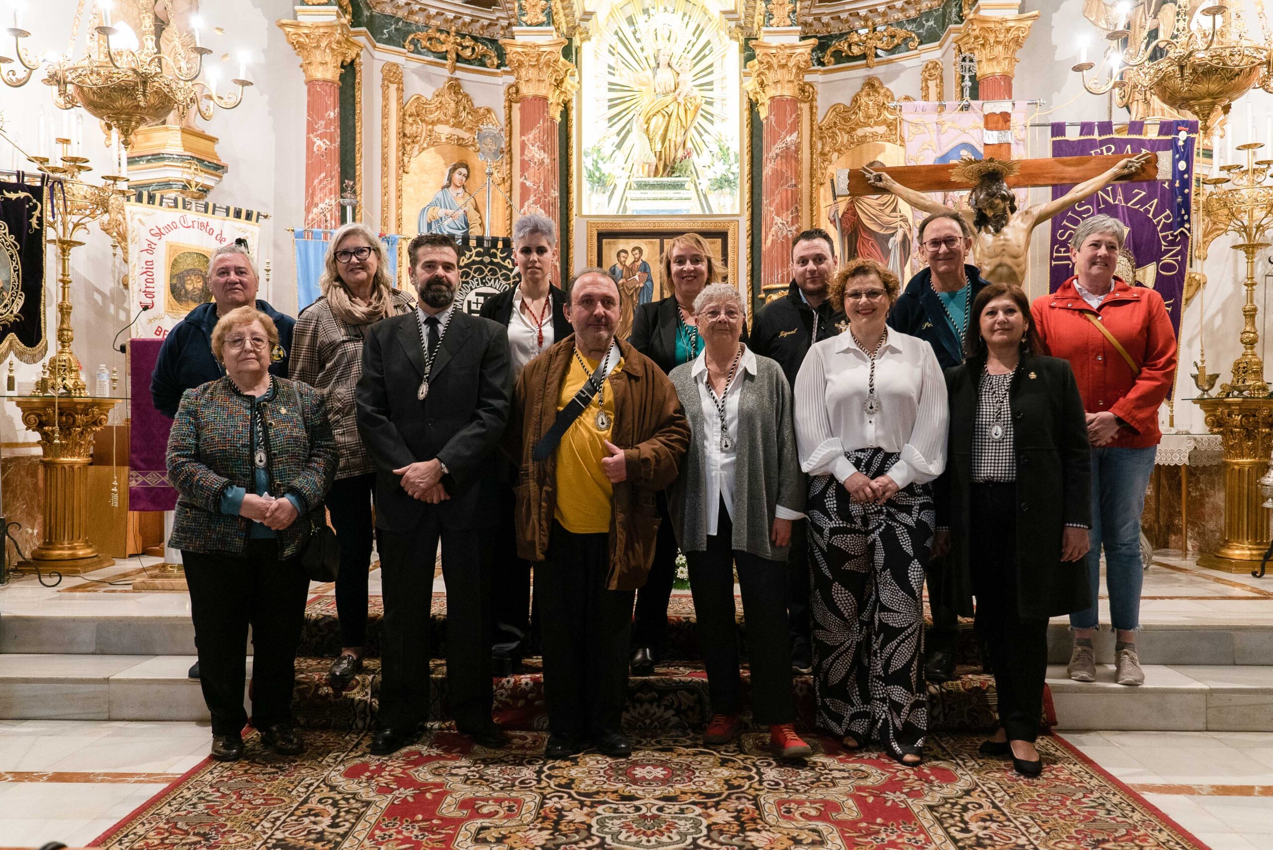 Tras la foto de familia de la JCSS en el altar, llegó otro de los momentos más esperados de la noche con el traslado de la imagen del Santísimo Cristo de la Misericordia por la cofradía del mismo nombre hasta su sede. Se trata de una tradición de gran arraigo en la localidad en la que son las mujeres de la cofradía las encargadas de portar la imagen a hombros al ritmo marcado por los tambores, poniendo así fin a una intensa noche.