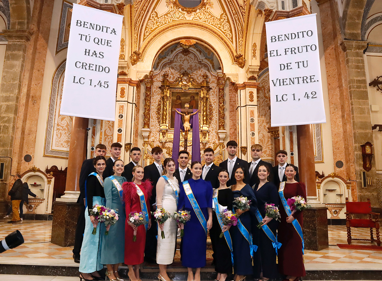 A continuación, desfilaron por la iglesia hasta el altar las nueve parejas de jóvenes que serán los responsables de la programación de septiembre: Miquel García y Elia Sebastiá, Vicente Ortiz y María Martínez, Álvaro Escot y Ana María Romero, Adrián Felguera y Nerea Flors, Alberto Chueca y Yaiza Delgado, Alejandro Garceso y Noemí Torres, Daniel Lavara y Blanca Ferrando, Manel Almoguera y Sofá Garner, y, por último, los caps de este año, Bruno Almenara y Andrea Alcácer.