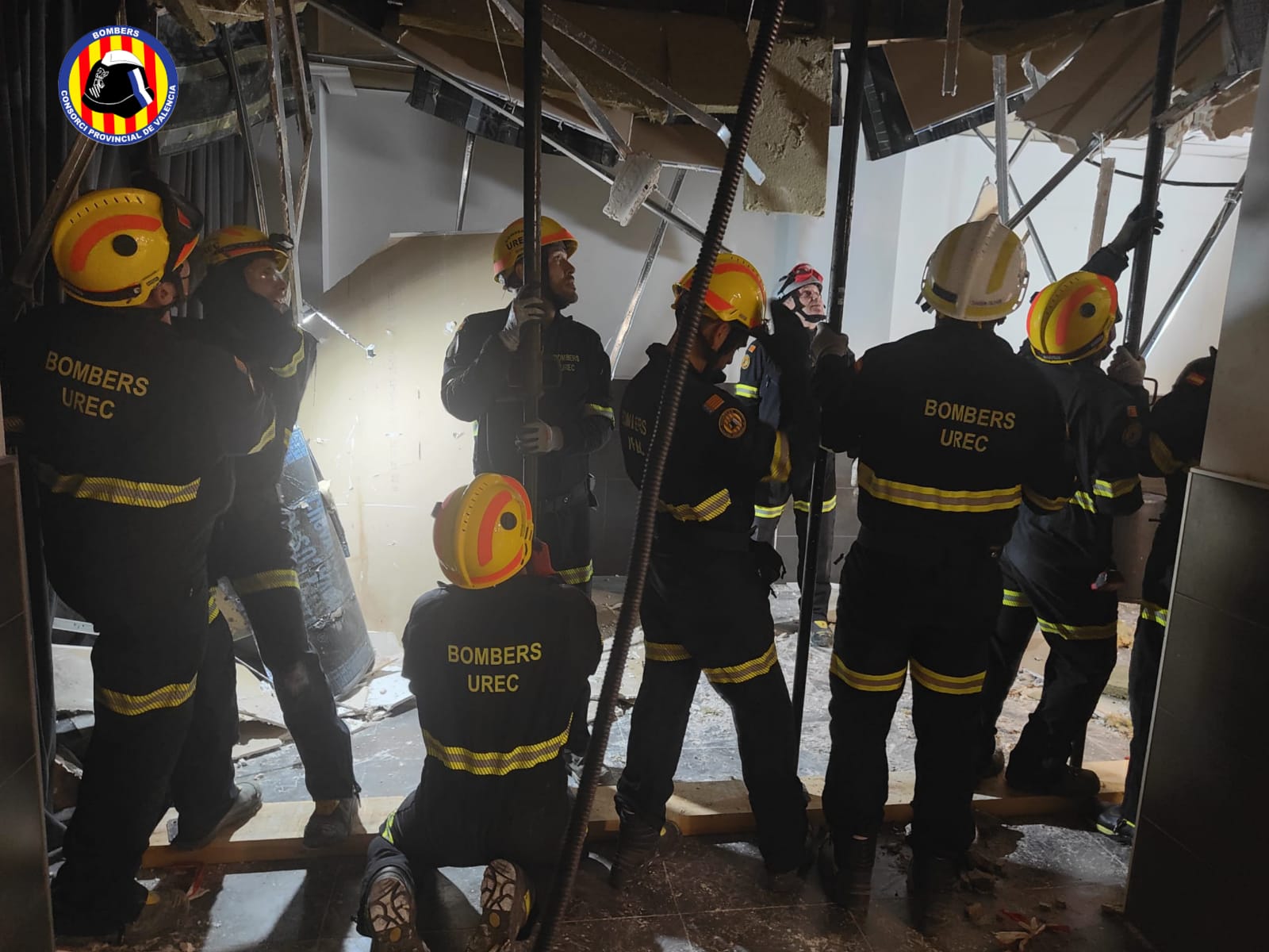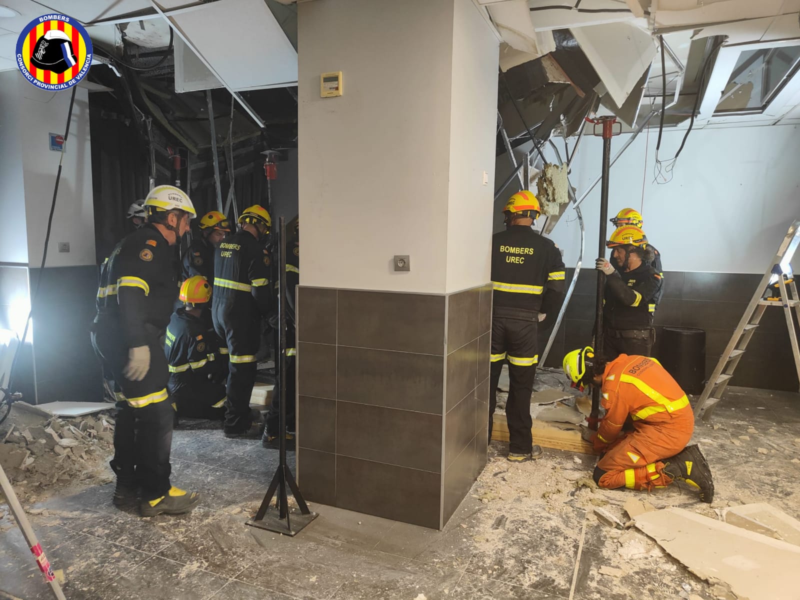 Ayer a las 19:04 horas se produjo el desprendimiento de una parte de la bovedilla de un casal fallero en Torrent. Los bomberos de la localidad lo han saneado y está siendo apuntalado con el apoyo de la UREC del Consorcio.