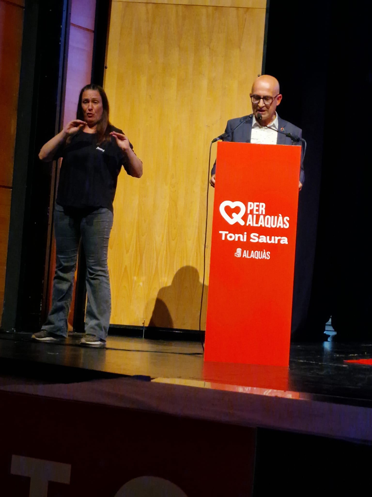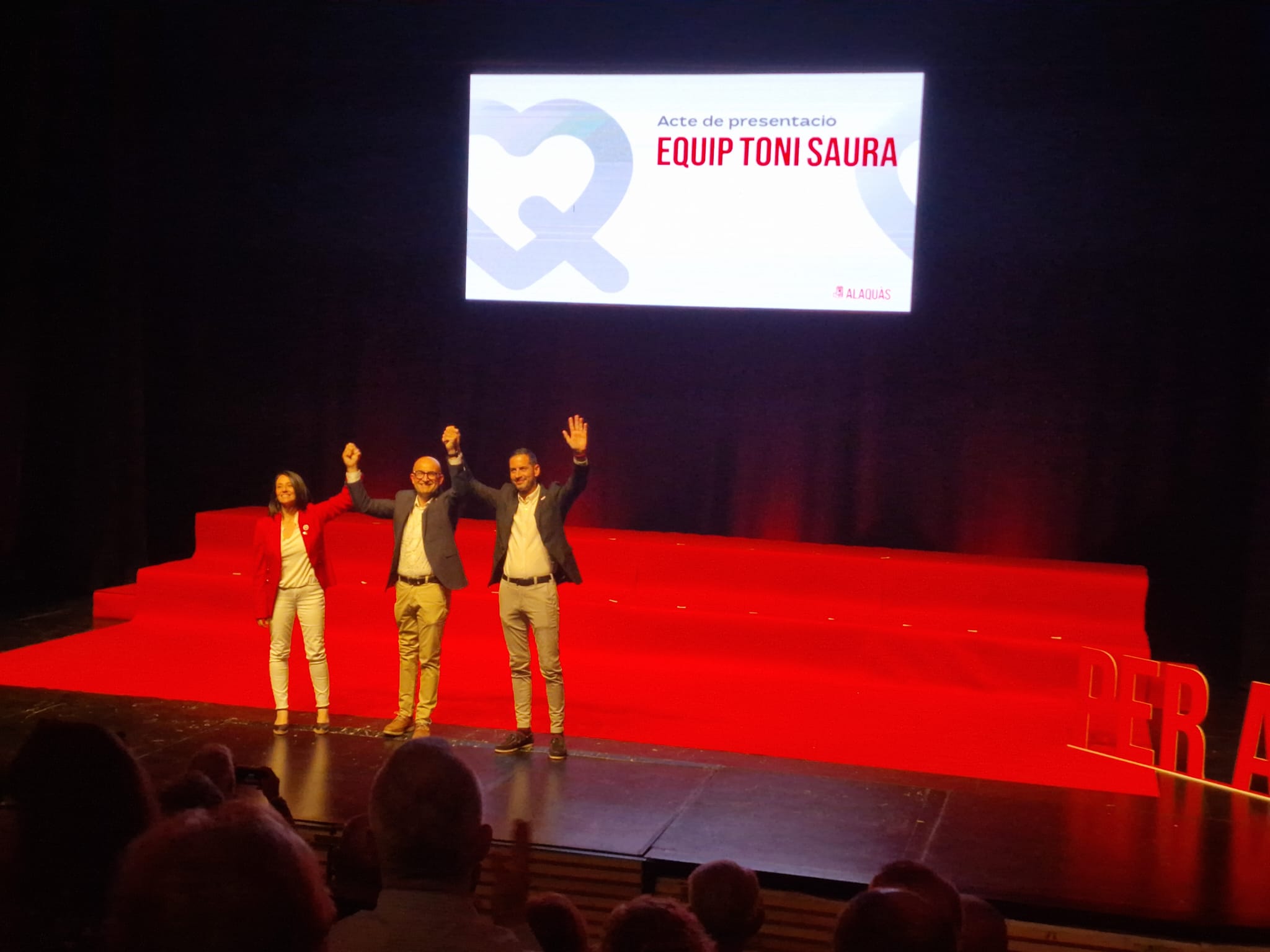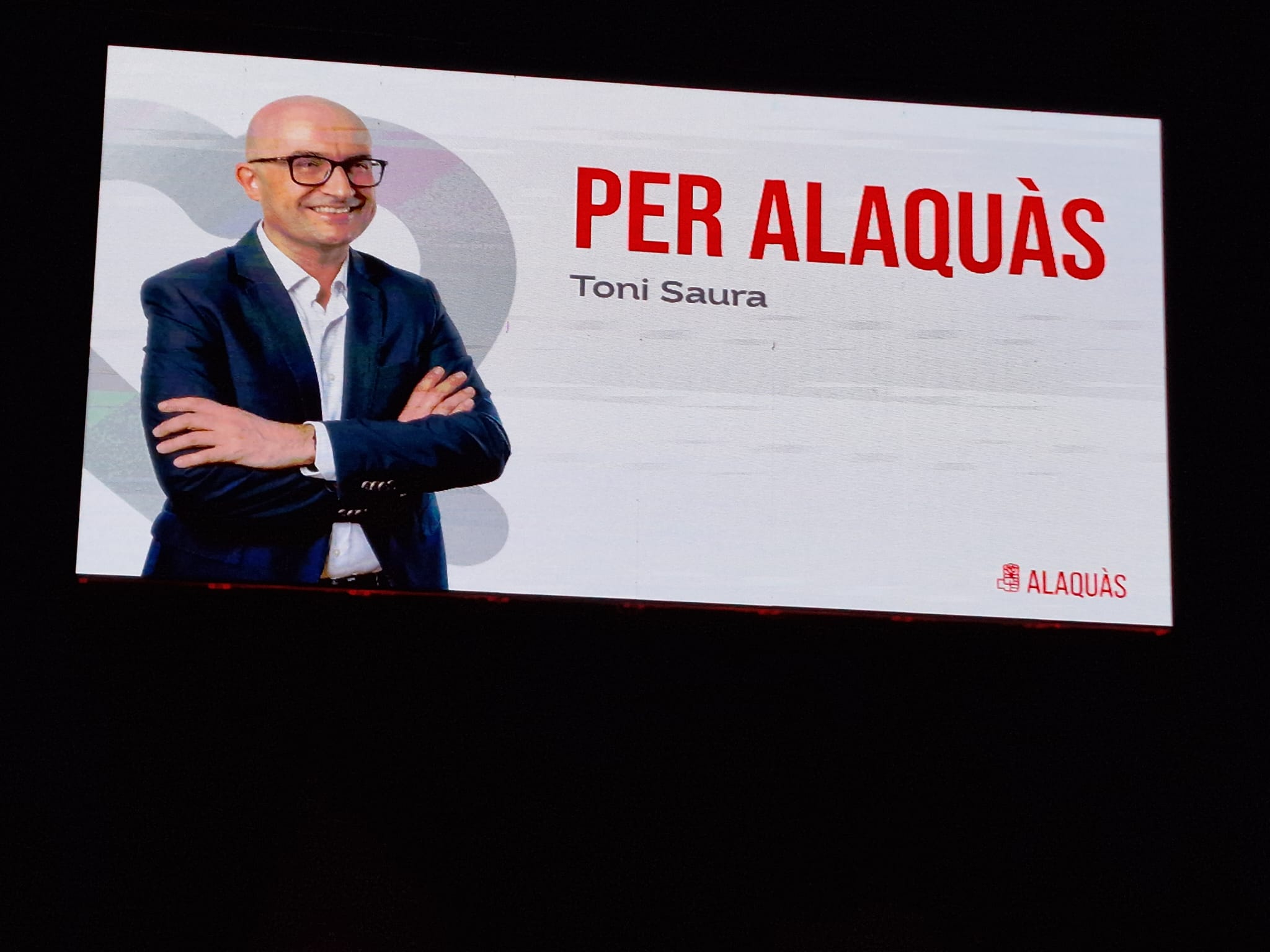 Toni Saura se mostró muy feliz por la respuesta «hemos superado las expectativas». Uno a uno, presentó a todos los integrantes de su lista que sigue contando con miembros de su máxima confianza, que incorpora alguna cara nueva y que combina juventud, experiencia, madurez y gente con ganas de «hacer pueblo». En su discurso habló del pasado reciente de Alaquàs, él ha sido su conductor en los últimos cuatro años, se refirió al presente y avanzó su proyecto para seguir transformando Alaquàs. Administrar las cuentas con responsabilidad y moderación en el gasto y cumplir con lo prometido hace cuatro años dijo haber sido la hoja de ruta de su gestión. Admitió haber pasado un tiempo «muy duro, por la pandemia. Pero, ha sido un orgullo ser vuestro alcalde» y recordó a los que nos dejaron «por este u otro motivo» fue cuando sonó el nombre del exdiputado Toni Castro (quien lo acompañó en su lista anterior, pero falleció en 2022). Toni Saura acabó pidiendo la confianza de Alaquàs para llevar a cabo algunos de los proyectos que enumeró y dio a conocer ante el Auditorio.