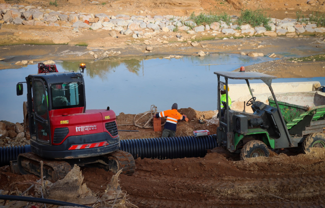 En paralelo, se están llevando a cabo trabajos de reparación en el colector del polígono industrial Mas del Jutge, que tras la DANA estaba vertiendo aguas residuales bajo el puente de Alaquàs y el de Cuatro Caminos, puntos por los que se encontraba roto. En estas ubicaciones ya se puede observar la instalación del nuevo colector, una solución que evitará los vertidos en el barranco y podrá conducir esta agua a la depuradora.