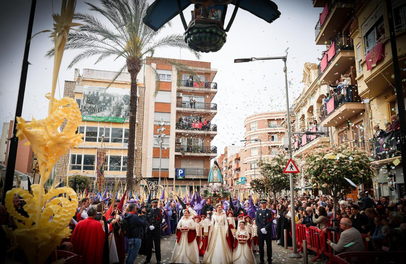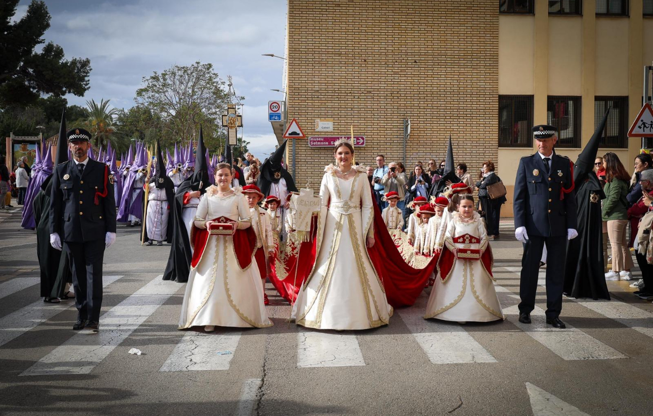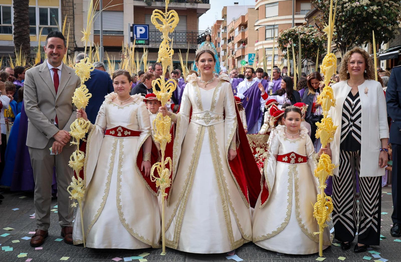 El momento culminante del Encuentro Glorioso ha tenido lugar cuando ambas procesiones se han encontrado en la Plaza Mayor. Allí, Lucía Mora Santandreu, la Reina del Encuentro, ha sido la encargada de anunciar la Resurrección de Cristo y proclamar la esperada “Alegría, alegría, alegría”. Acompañada por sus camareras, Alejandra Andreu Carratalà e Irene del Molino Chirivella, y sus 14 pajes, Lucía Mora Santandreu.