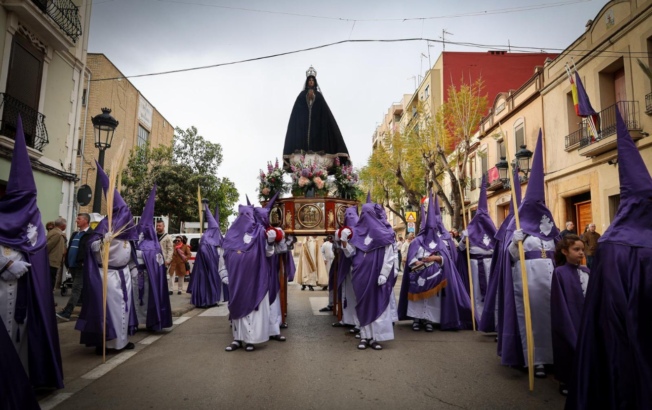 A las 9:30 h, las calles de Torrent se llenaron de fervor con la presencia de las hermandades de la ciudad. Desde la Parroquia de Nuestra Señora de Monte Sión, salieron las hermandades de Jesús de Medinaceli, Crucifixión del Señor, Jesús ante el Sanedrín, Descendimiento de la Cruz, Santa María del Testimonio, San Juan del Protesto, Prendimiento de Jesús, Set Paraules i el Crist del Perdó, Santa Cena y Caballeros del Santo Cáliz, Flagelación del Señor y la Hermandad de Nuestra Señora de los Dolores, la Soledad y la Resurrección, acompañadas de la Reina del Encuentro, Lucía Mora Santandreu, y su cortejo de camareras y pajes.