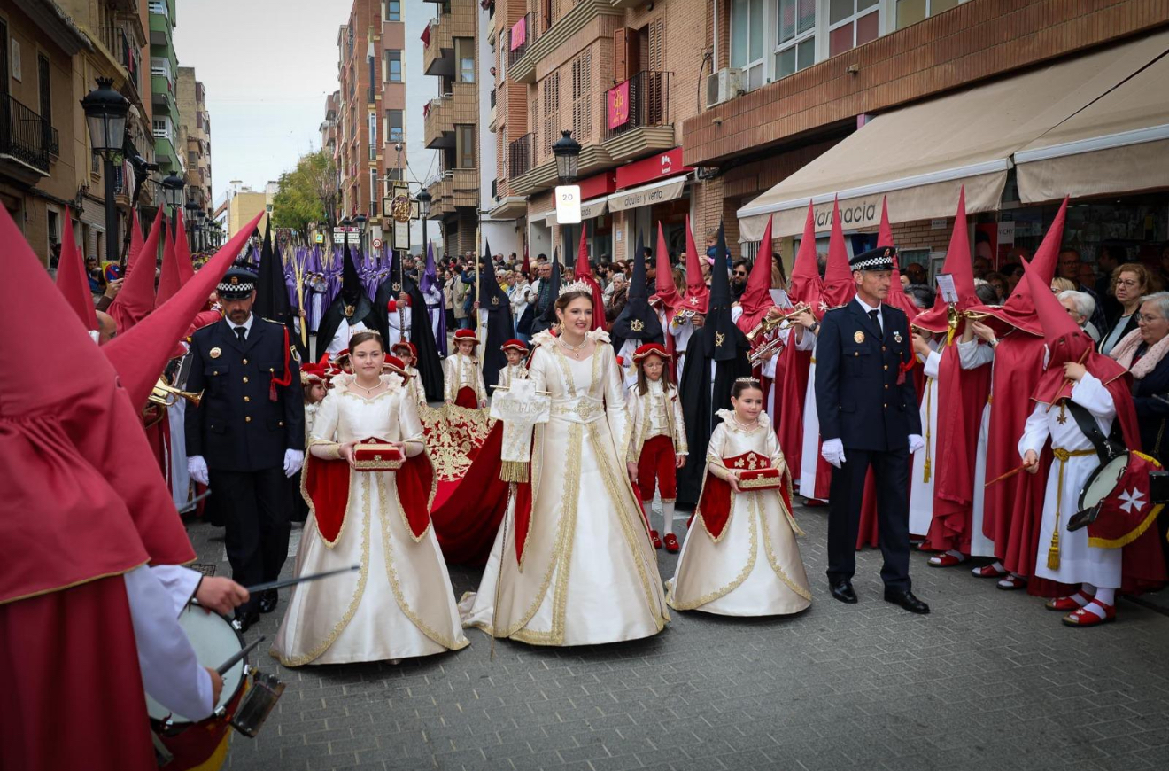 Desde primeras horas de la mañana, la ciudad se ha preparado para vivir con intensidad uno de los momentos más significativos de la tradición religiosa. A las 8:00 h, la Hermandad de la Flagelación del Señor salió en procesión para dirigirse al domicilio de la Reina del Encuentro, Lucía Mora Santandreu. Junto a su cortejo, la Reina fue acompañada hasta la Parroquia de Nuestra Señora de Monte Sión, desde donde se inició la gran procesión.