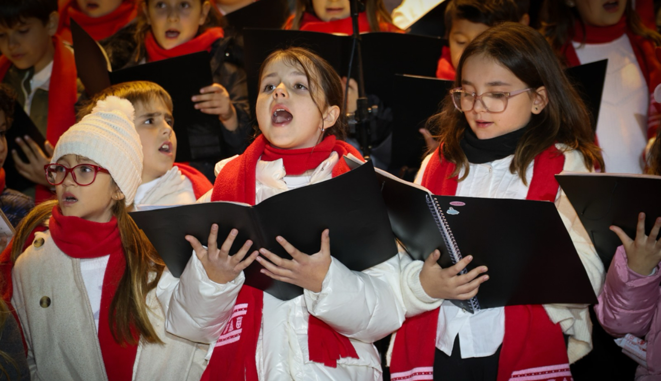 La apertura del acto estuvo marcada por la voz de la torrentina Paula Villarroya, que interpretó en solitario “Oh Blanca Navidad”, llenando la plaza de un ambiente cálido y festivo. Después, la artista se unió a los coros infantiles de la Unió Musical de Torrent, el Círculo Católico y la Escola Coral para cantar “Que canten los niños”, una interpretación que emocionó especialmente por su mensaje y la energía de los más pequeños.