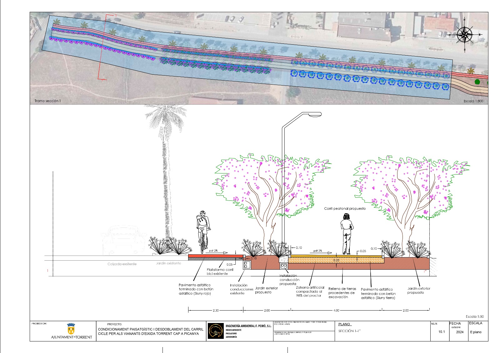 El Ayuntamiento de Torrent ha preparado el proyecto de acondicionamiento paisajístico y desdoblamiento del carril ciclo-peatonal que conecta la ciudad con Picanya, una intervención que cambiará por completo la fisonomía de este transitado itinerario. El actual carril, que se ha quedado estrecho ante el creciente uso por parte de peatones, mascotas, patines y ciclistas, será ampliado y convertido en un amplio paseo verde que invite al deporte, al paseo tranquilo y al contacto con la naturaleza.