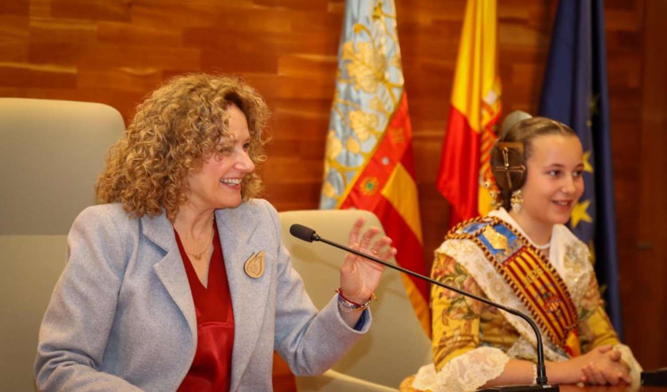 La alcaldesa Amparo Folgado ha aprovechado la ocasión para hacer entrega de una peineta de chocolate de Torrent.