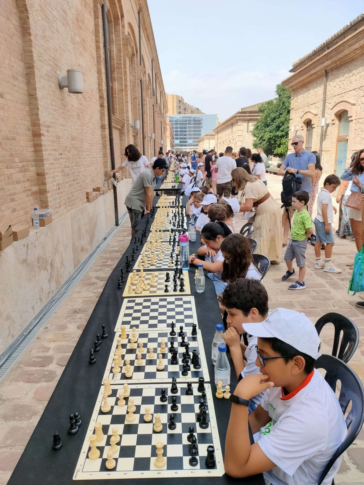 Fiesta, alegría, disfrute y un acercamiento al maravilloso mundo del ajedrez es lo que se vivió en la explanada del complejo Petxina, con los niños y niñas, jóvenes ajedrecistas, como grandes protagonistas.